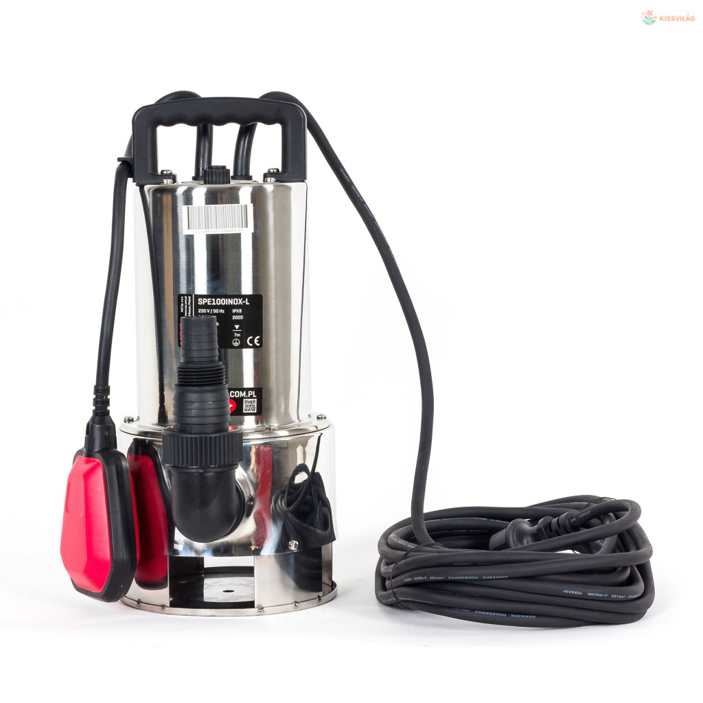 Merülőszivattyú tartós rozsdamentes acél burkolattal, 1000 W-os villanymotorral, beépített úszókapcsolóval, merülési mélység akár 7 m-ig. Tiszta és szennyeződéseket tartalmazó víz szivattyúzására legfeljebb 35 mm átmérőig. 20.000 l/h hatásfok.