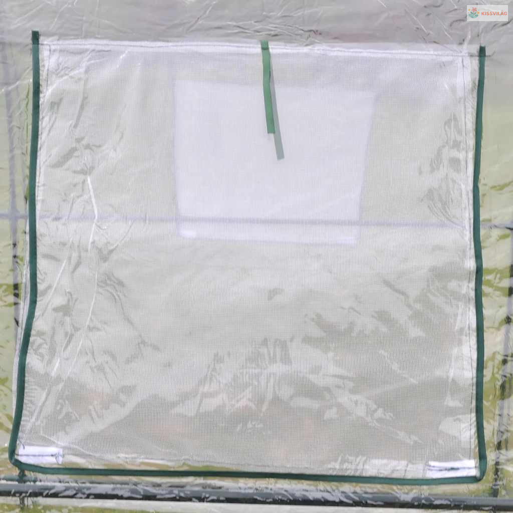 A melegház teteje átlátszó, így a napfény zavartalanul érheti a növényeket és a virágokat. UV-álló és fagyálló, így az időjárás viszontagságai által okozott kár csak minimális lehet. Szakadásálló is, így remek alternatívája lehet a hagyományos üveg melegházaknak.