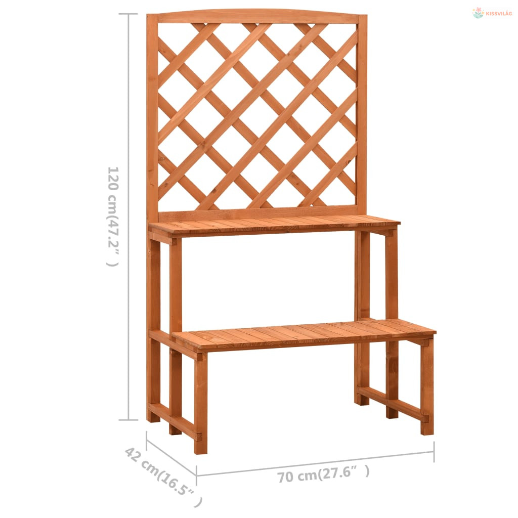 Ez a tömör fenyőfából készült virágállvány masszív, és kültéri használatra alkalmas. A kerti növényállvány két különböző magasságú polccal rendelkezik, amelyek bőséges helyet biztosítanak a cserepes növények és a kerti díszek számára. A létrás kialakítással gyönyörűen megjelenítheti virágait, és a növények is több napfényt kapnak és jobban növekednek. Emellett a rács kiváló támaszt biztosít a kúszónövényeknek.