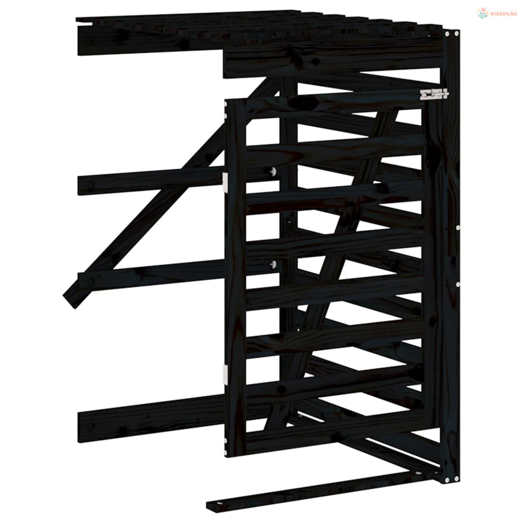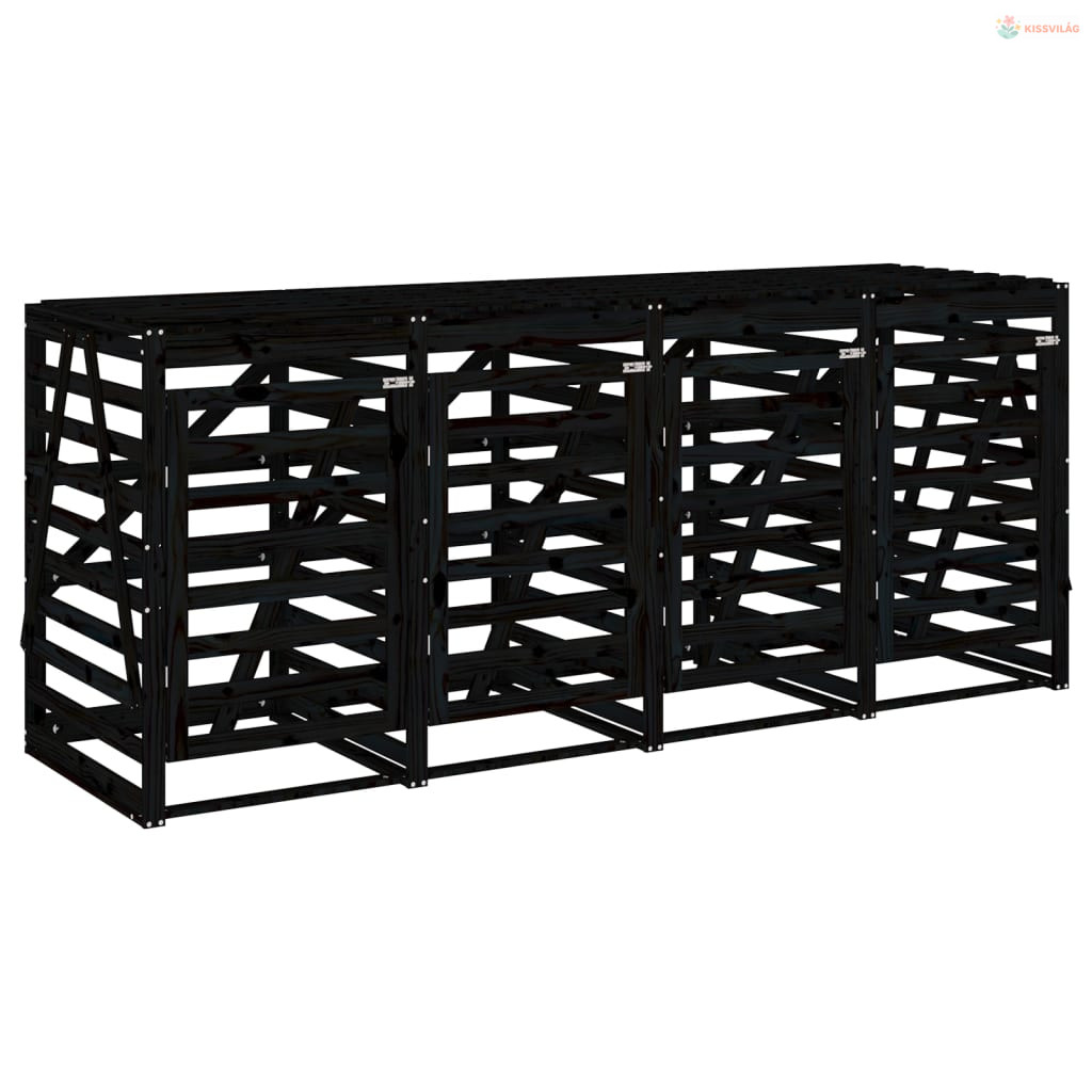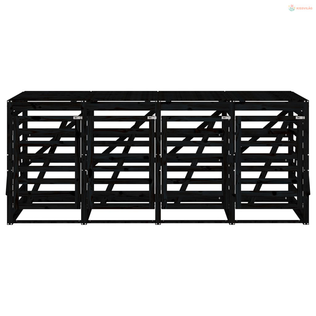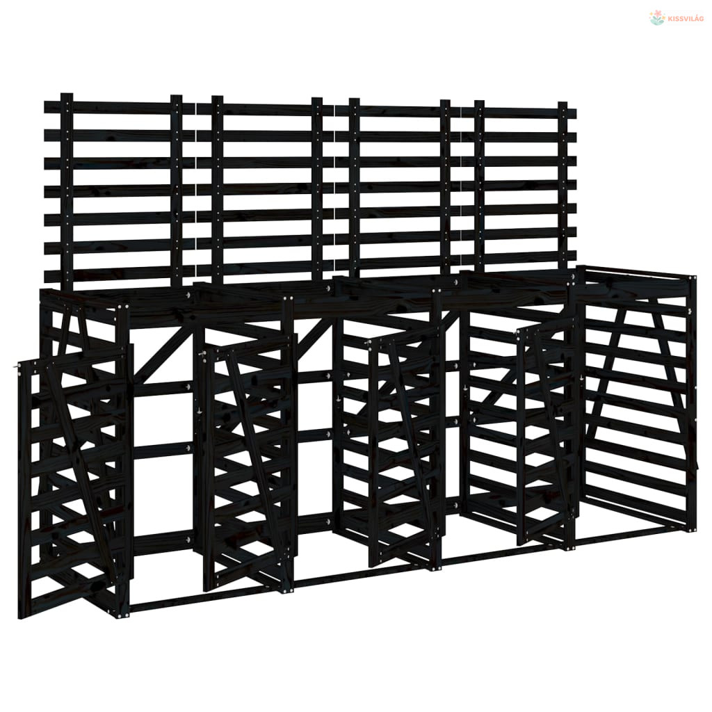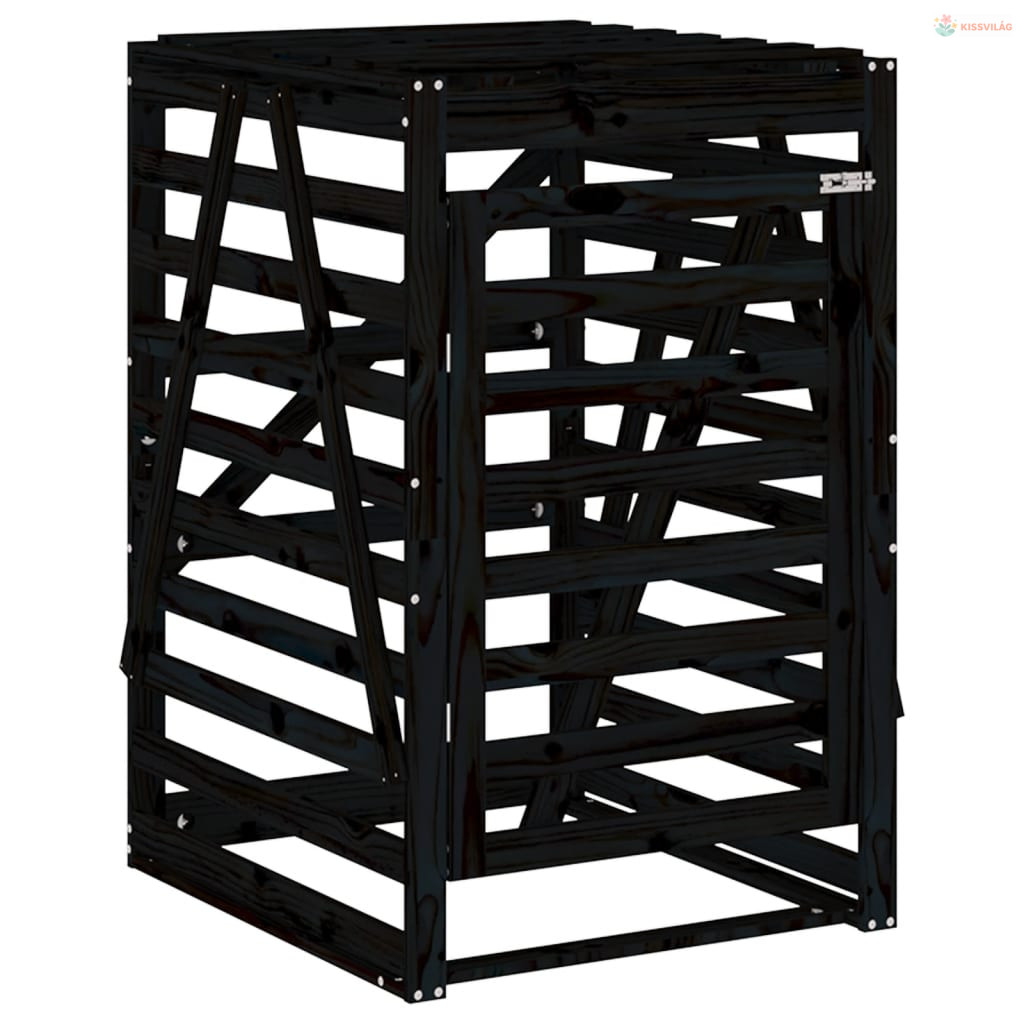 Négyes fekete tömör fenyőfa görgős szemeteskuka-tároló