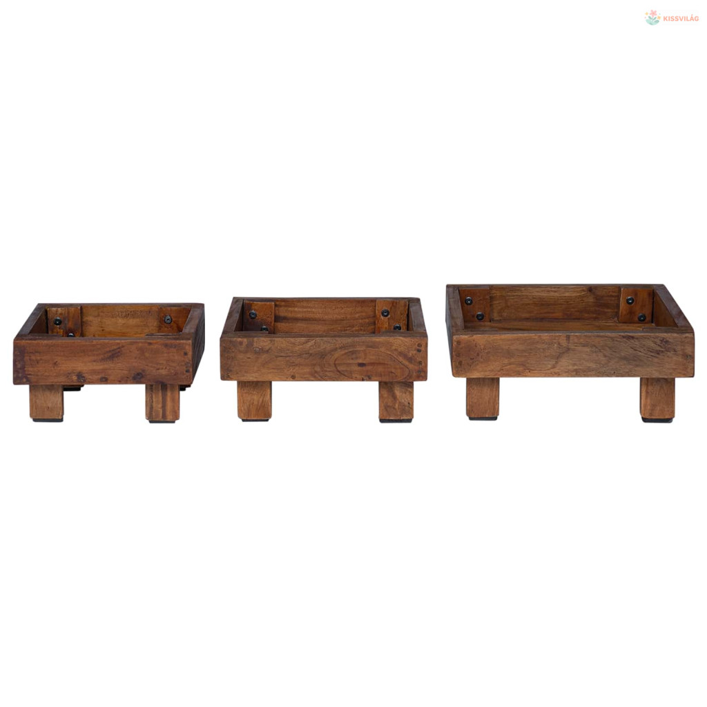 Ez a növényállvány szett szuper elegáns megoldás, hogy stílusosan mutasd be a kedvenc növényeidet. Tömör mahagóni fából készült, így rusztikus megjelenést ad, ami simán passzol bármilyen kertbe vagy teraszra. A texturált felülete nem csak a növények támogatására jó, hanem emeli is a kültéri dekorációd, a kézműves bájával. Három különböző méret sokoldalúságot kínál, így akár lépcsőzetes kertet is könnyedén kialakíthatsz.