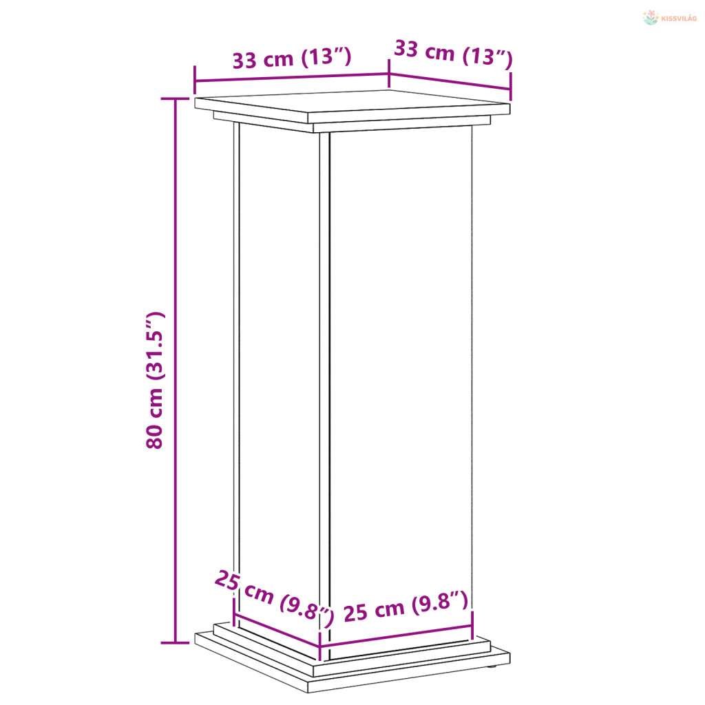 Növényállvány Fekete tölgy 33 x 33 x 80 cm Faanyag