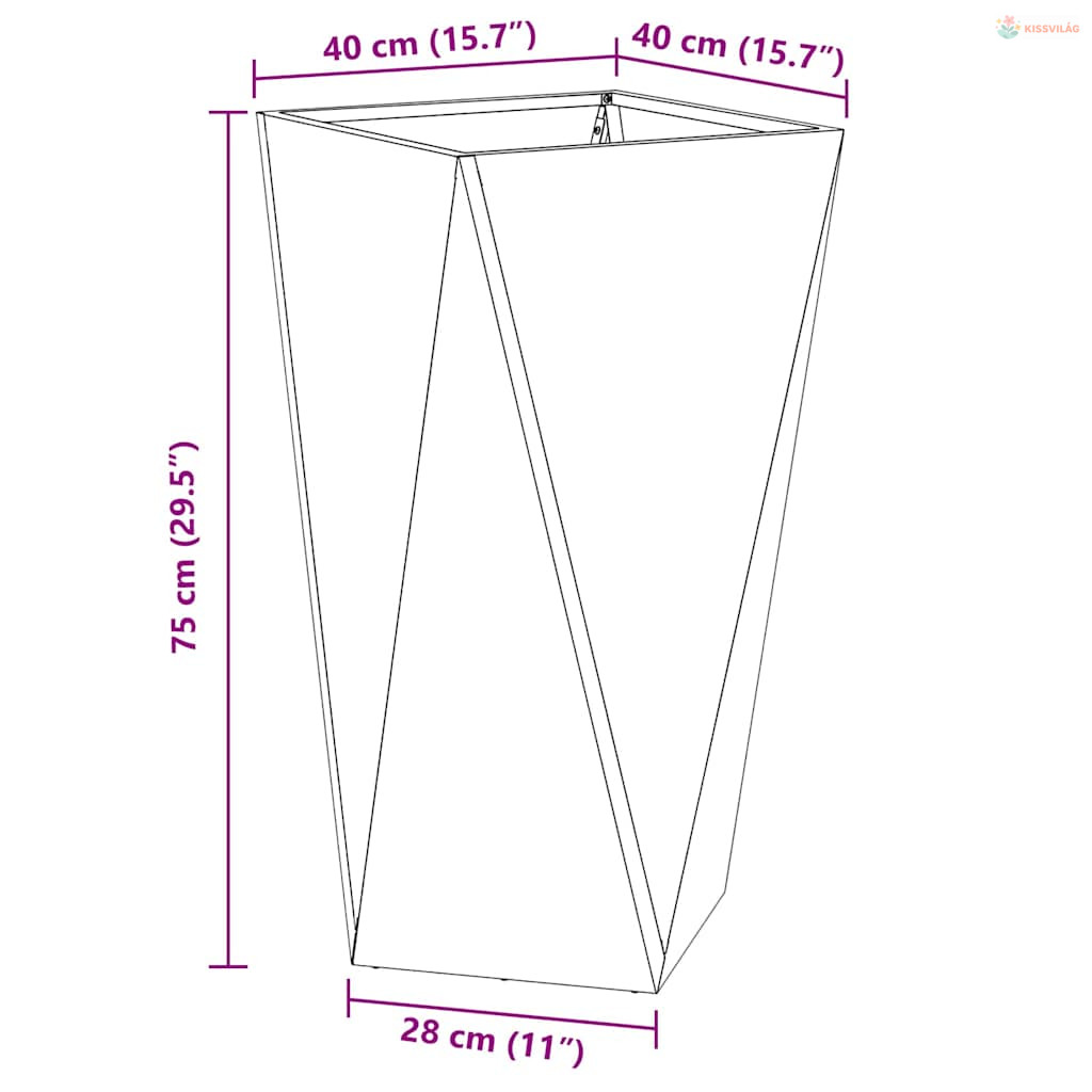 • Anyagok: 100% acélból készült, így a virágtartó erős és tartós, aminek köszönhetően bírja a rossz időt. Ez az anyag választás tökéletesen ötvözi a modernebb stílust és a praktikusságot, lehetővé téve, hogy a virágtartó évekig része legyen a kertednek.