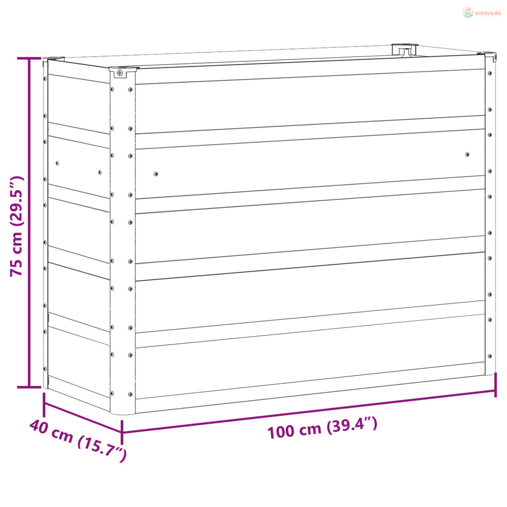 • Tartós acél konstrukció A virágcserép acél felépítése páratlan tartósságot és védelmet nyújt az időjárás ellen. Ideális beltéri és kültéri használatra, mert tovább bírja a mindennapokat, miközben megőrzi a szép kinézetét. Az acél keret stabil otthont biztosít a növényeidnek, feldobva a teret.