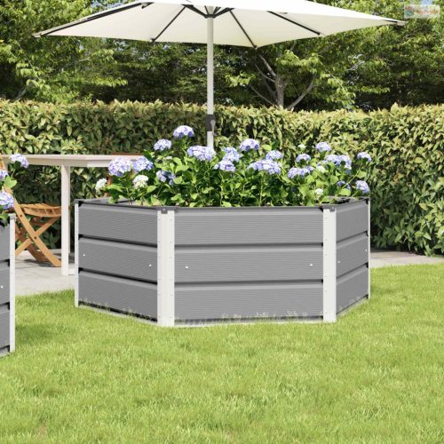 Ez a hatszögletű színes acél ültető feltűnő hatszögletű formájával készült masszív acélból, ami ötvözi a modern eleganciát és a praktikus funkciót a kültéri dekorációhoz. Tökéletes választás kertekbe és teraszokra, remekül illeszkedik minden tájhoz.