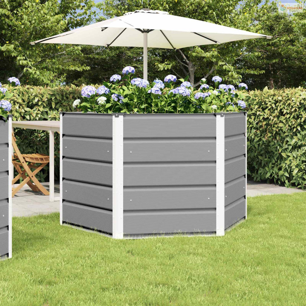 Ez a hatszögletű színes acél ültető feltűnő hatszögletű formájával készült masszív acélból, ami ötvözi a modern eleganciát és a praktikus funkciót a kültéri dekorációhoz. Tökéletes választás kertekbe és teraszokra, remekül illeszkedik minden tájhoz.