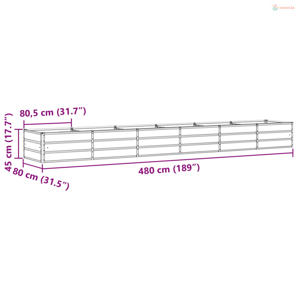 • Általános dimenziók: 480 x 80 x 45 cm (Ho x Szé x Ma)