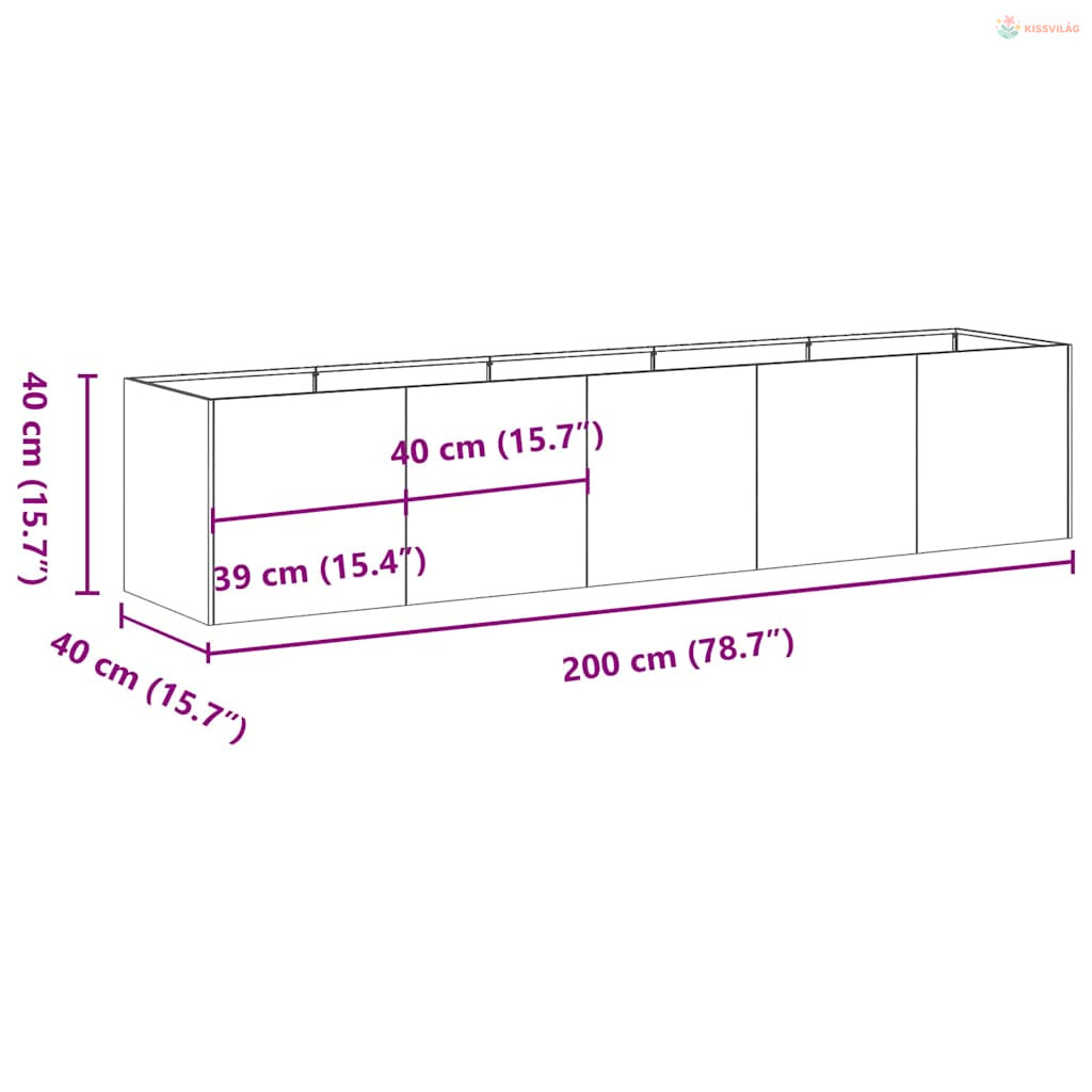 Növénytartó olívazöld 200x40x40 cm hidegen hengerelt acél