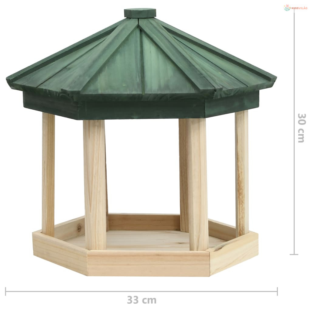 Nyolcszögletű tömör fenyőfa madáretető 33 x 30 cm
