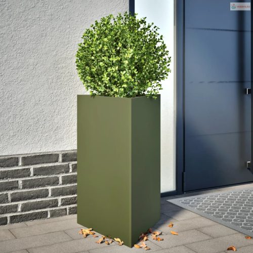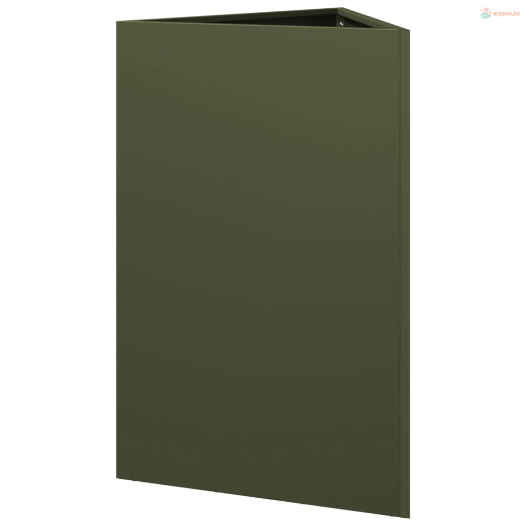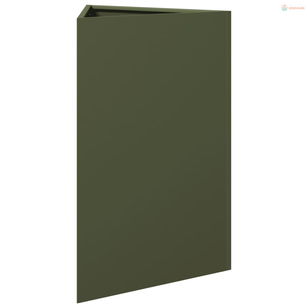 Olívazöld acél háromszög alakú kerti növénytartó 50x43x75 cm