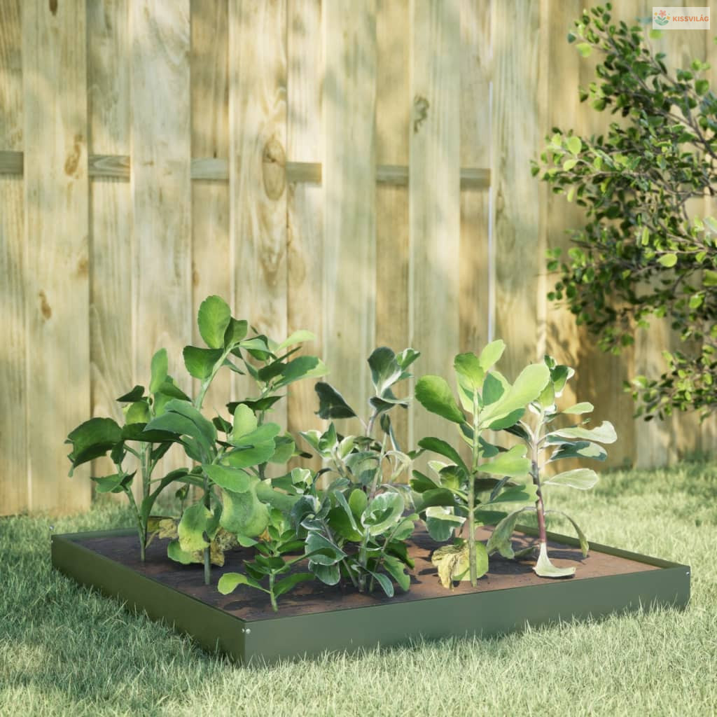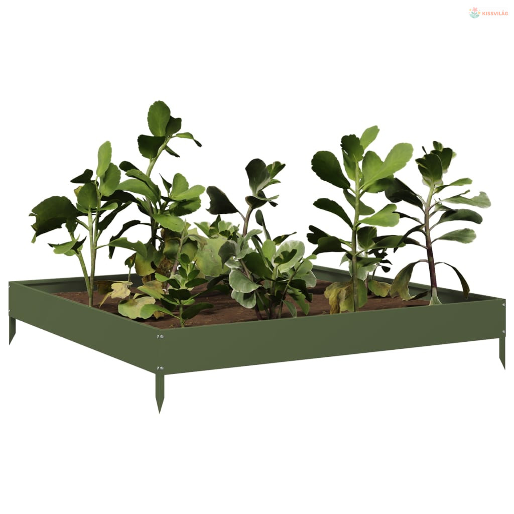 Olívazöld acél kerti magaságyás 100 x 100 x 18,5 cm