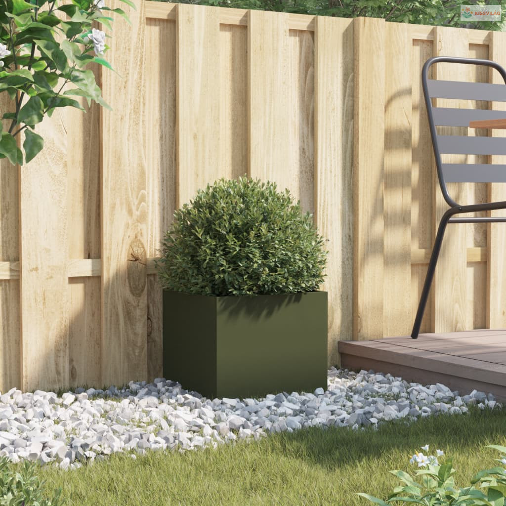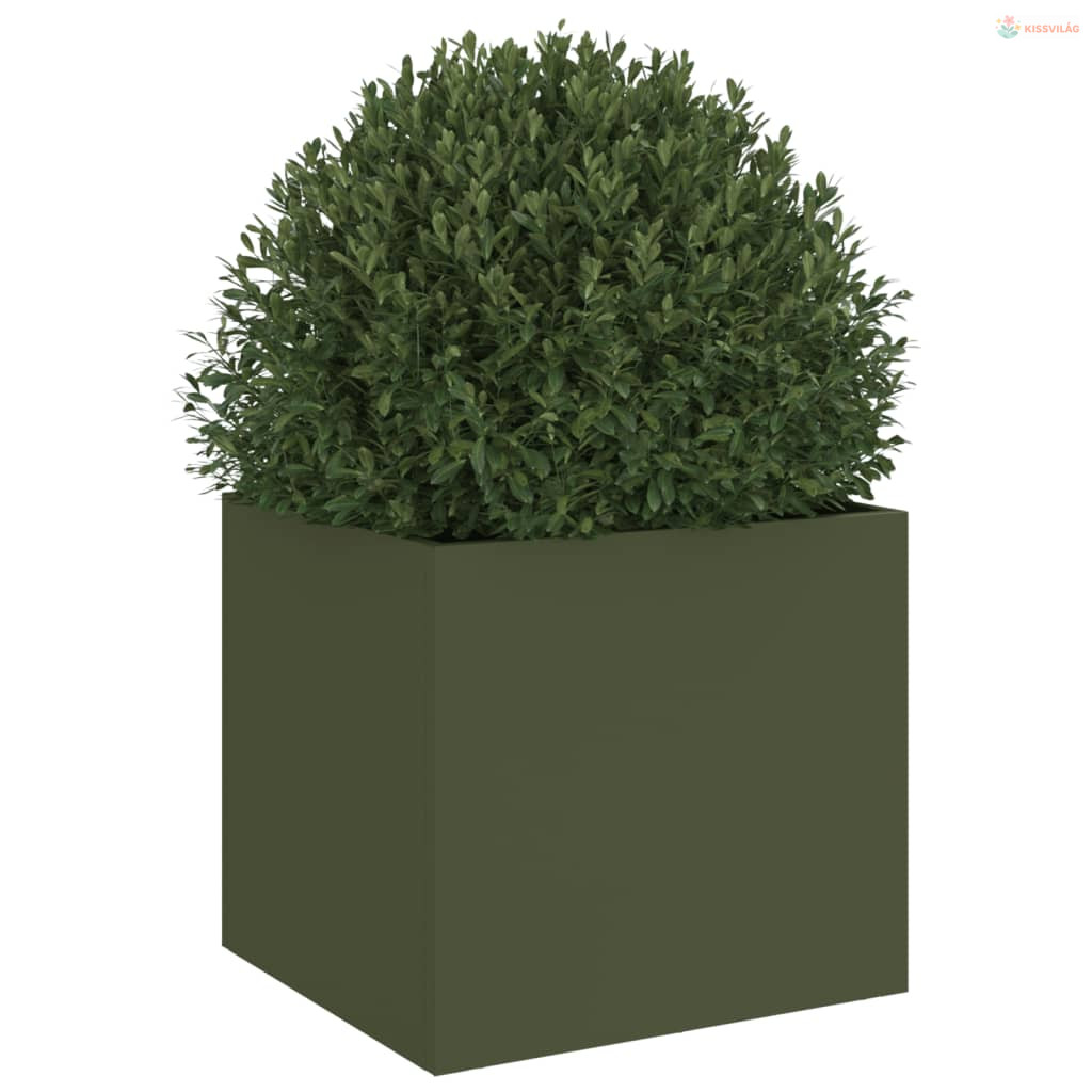 Olívazöld acél növénytartó 32 x 30 x 29 cm