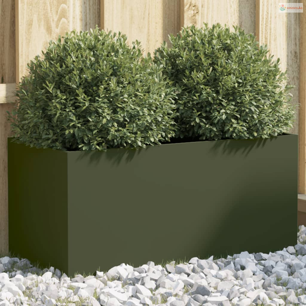 Olívazöld acél növénytartó 62 x 30 x 29 cm