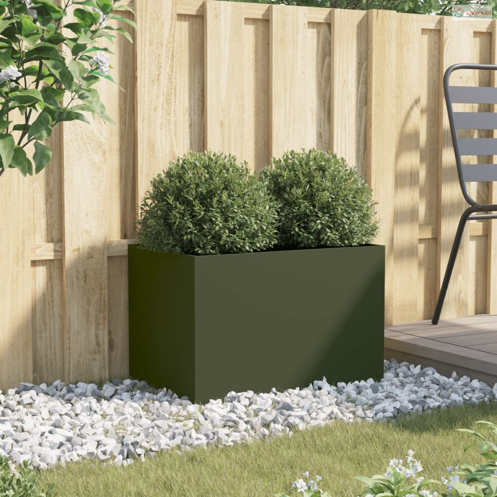 Olívazöld acél növénytartó 62 x 40 x 39 cm