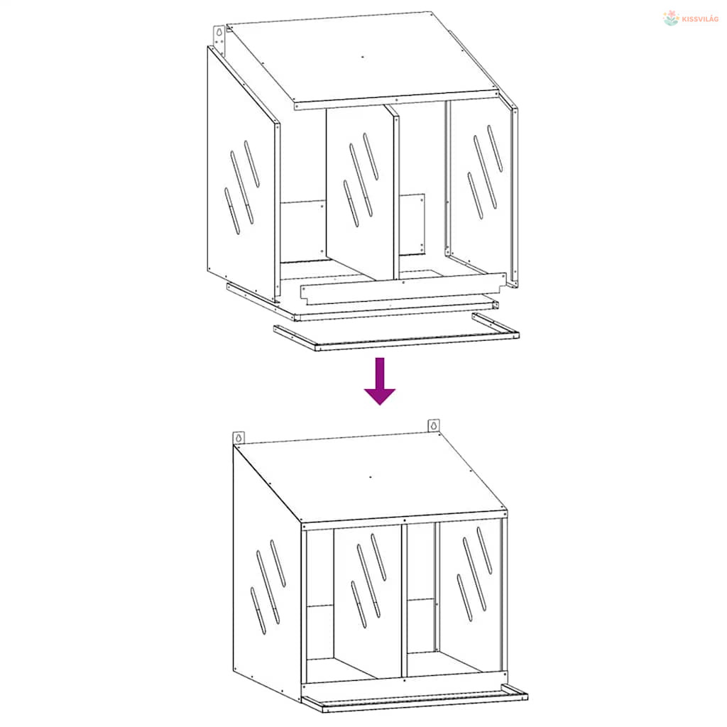 • Az egyes fészkelőhelyiségek méretei: 25 x 49 x 45/56,5 cm (Szé x Mé x Ma)