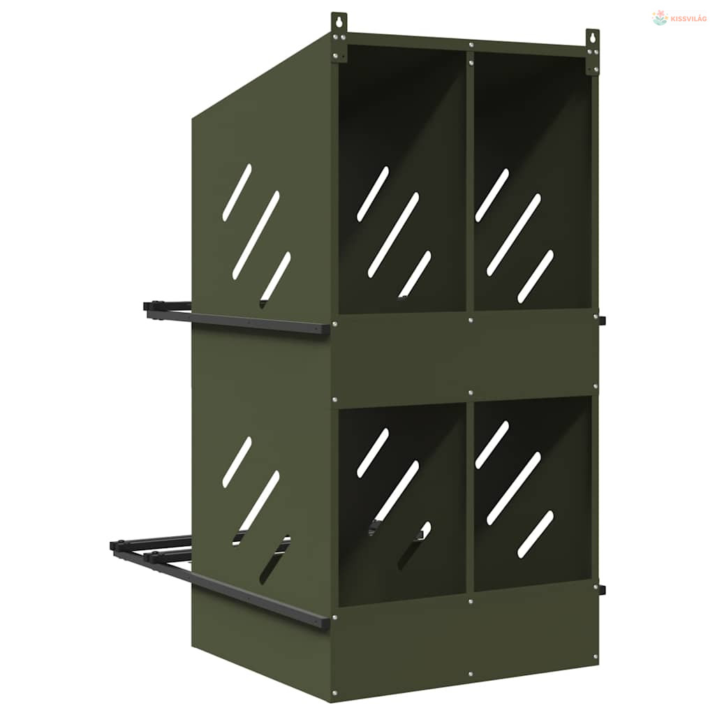 Olívazöld fémből fém csirke fészekrakó doboz 4 rekesszel