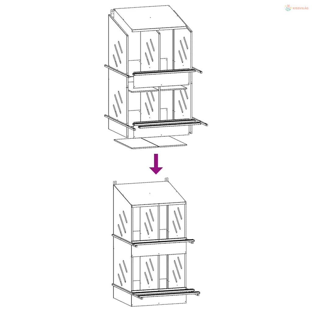 • Az egyes felső fészekrakó helyiségek méretei: 25 x 49 x 46,5/60 cm (Szé x Mé x Ma)