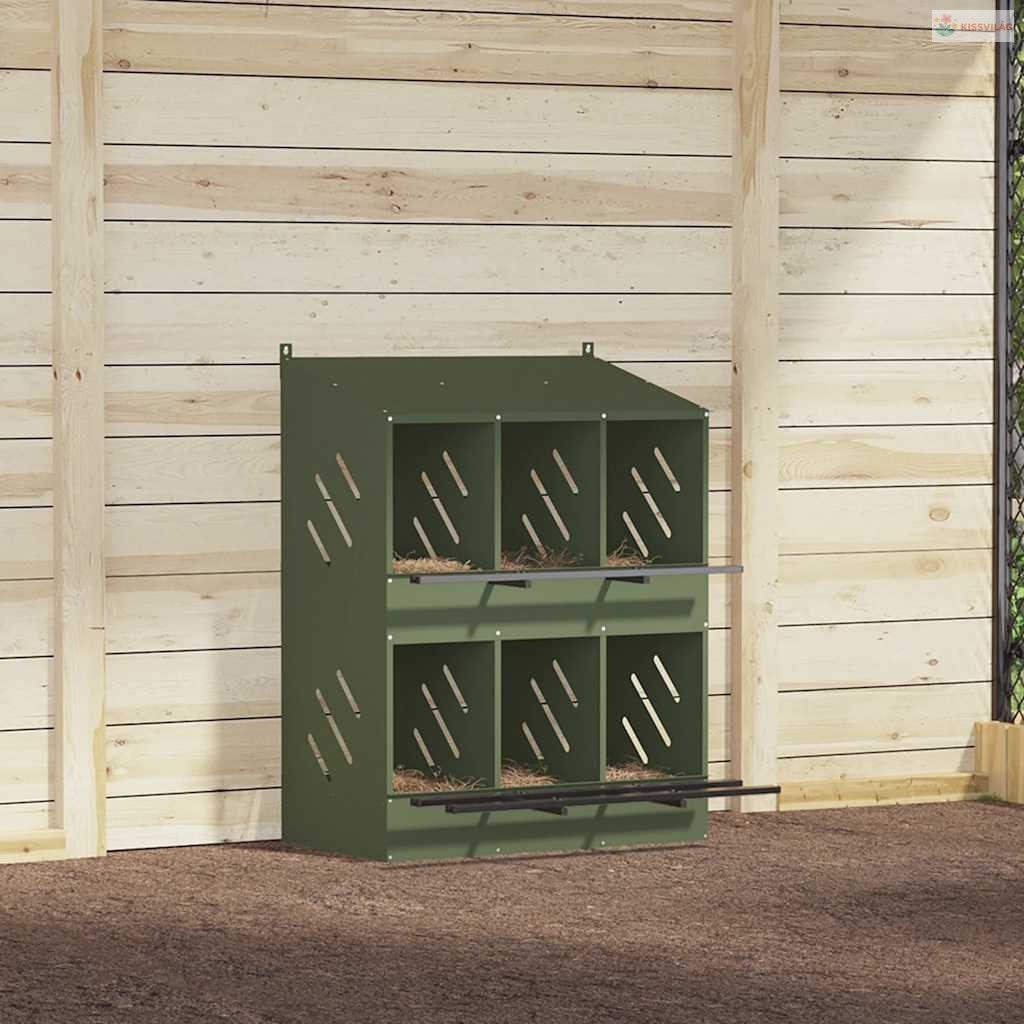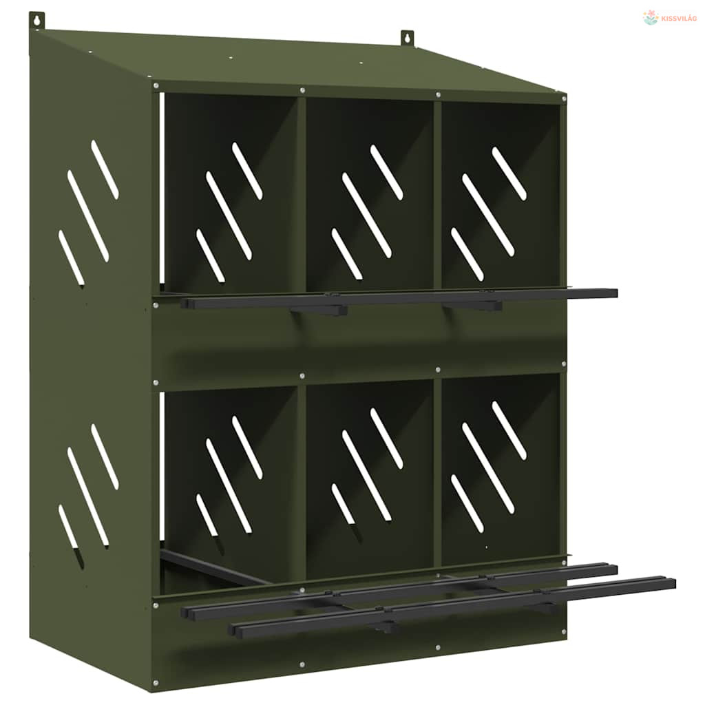 Olívazöld fémből fém csirke fészekrakó doboz 6 rekesszel