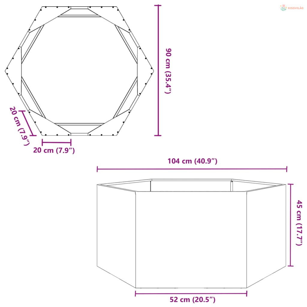 Olívazöld hatszögű acél kerti növénytartó 104 x 90 x 45 cm