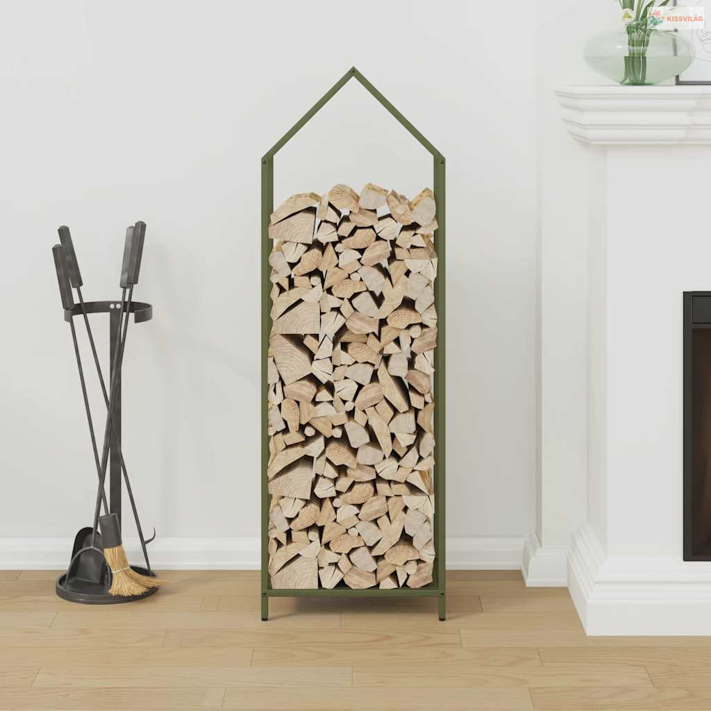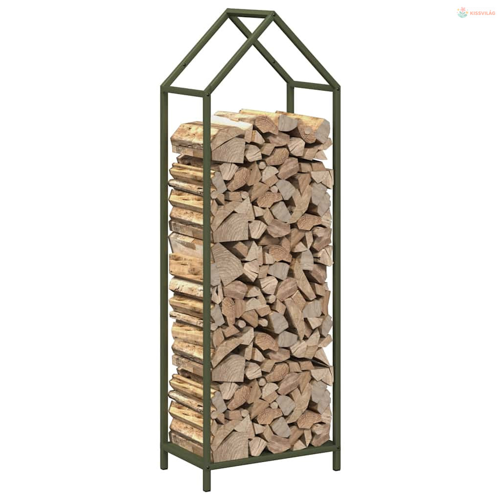 Olívazöld hidegen hengerelt acél tűzifatároló 40x25x120 cm