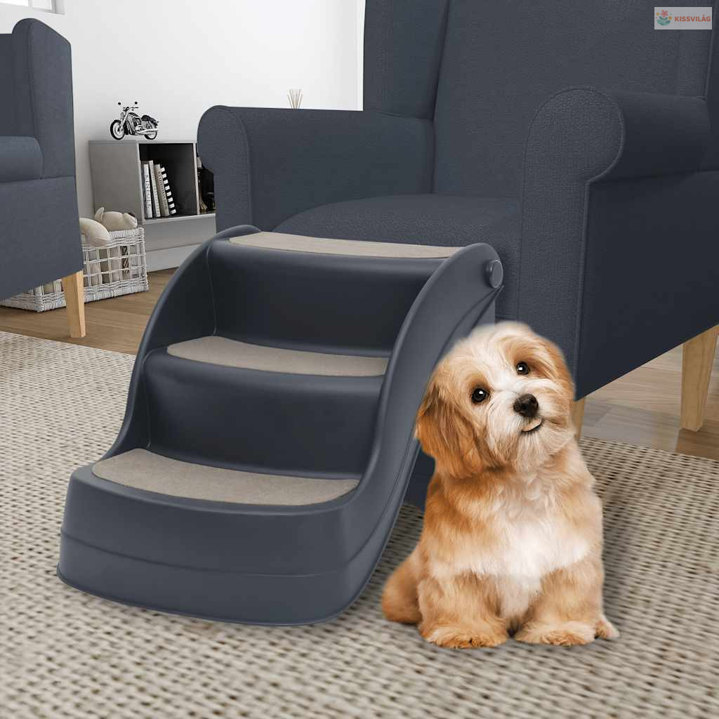 Összecsukható sötétszürke 3 fokos kutyalépcső