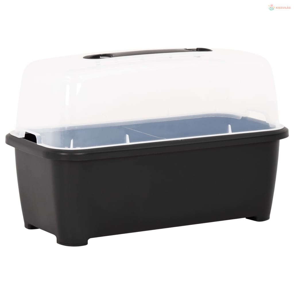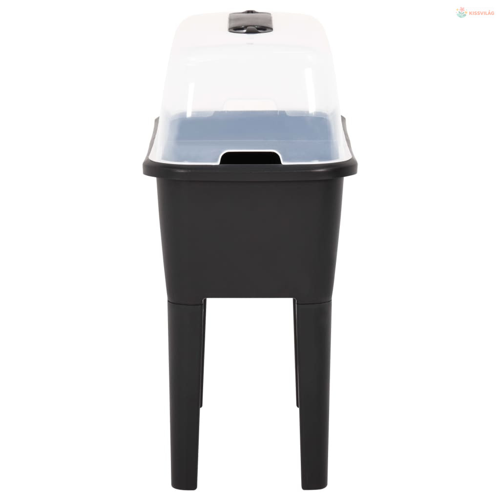 A 100% polipropilénből készült virágtartó UV- és fagyálló, valamint tökéletesen alkalmas beltéri és kültéri használatra. Nagy, 52 literes űrtartalmú, így jelentős számú növény és virág fér el benne. A fogantyúval ellátott átlátszó fedél biztosítja az optimális hőmérsékletet, védelmet a tűző nappal szemben, és a rovarok ellen. Ezenkívül ez a melegágy ideális palánták ültetésére és fiatal növények védelmére is. Ideális munkamagassággal rendelkezik, és könnyen összeszerelhető a dugaszrendszernek köszönhetően.