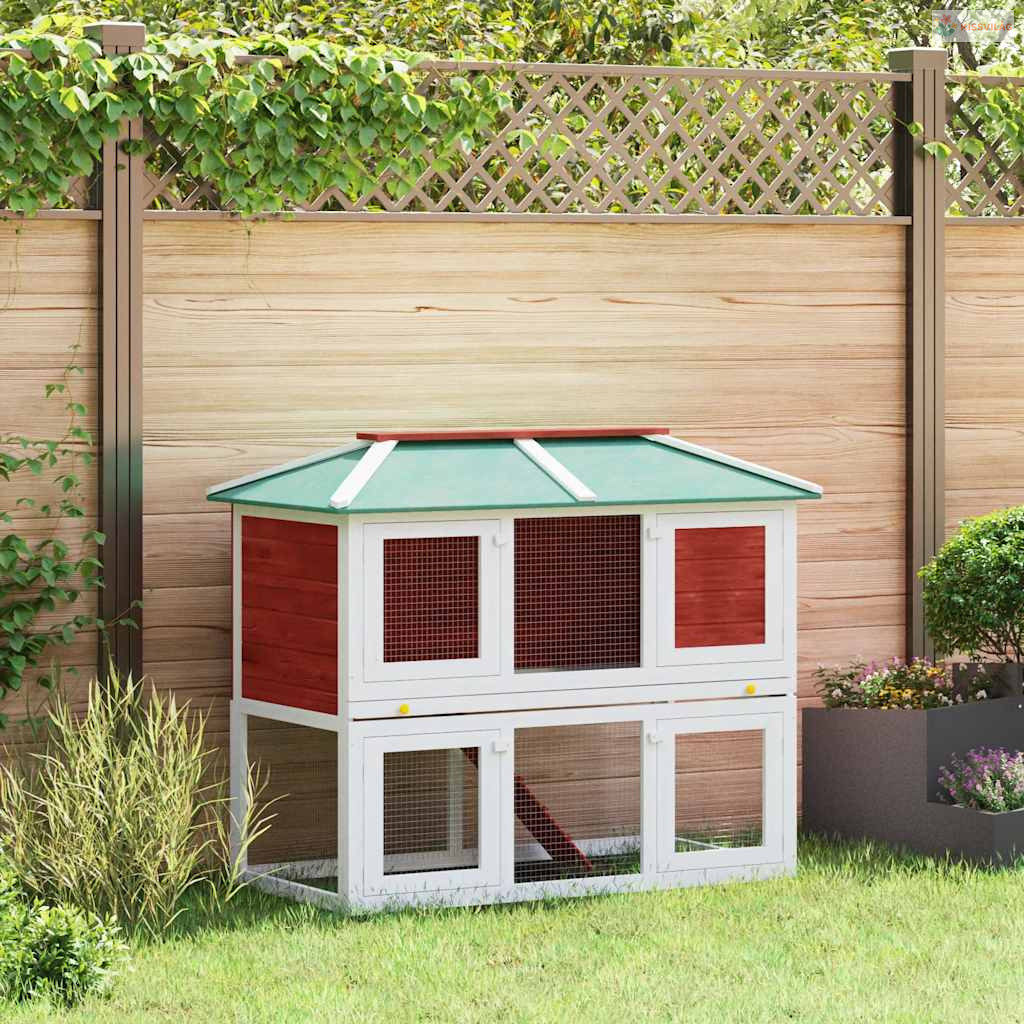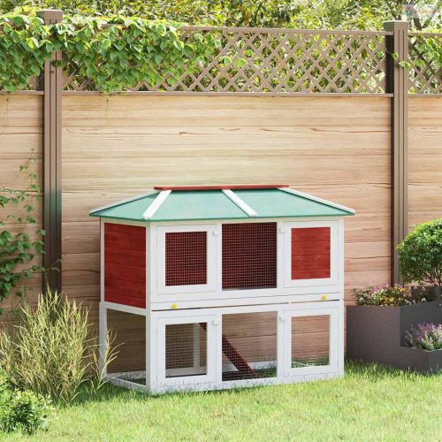Piros kétszintes fa nyúlketrec