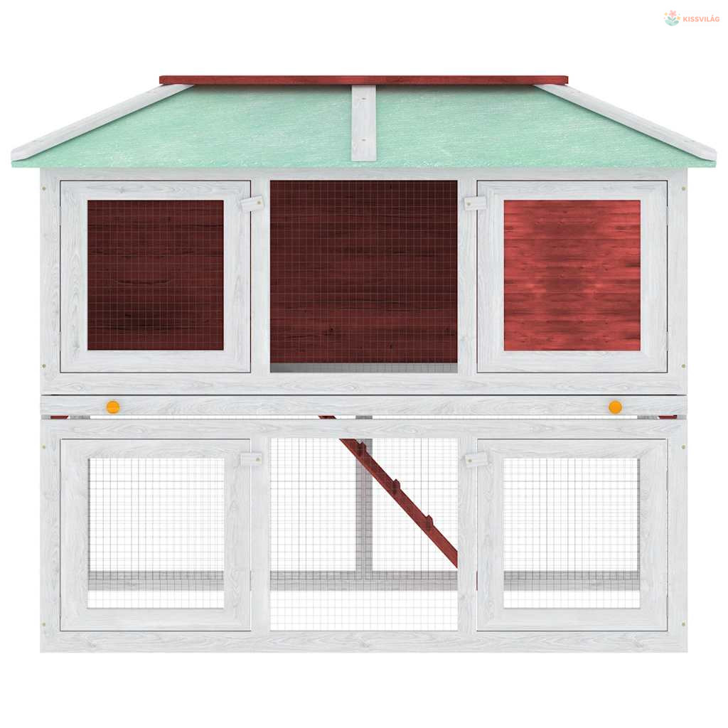 Az állatketrec kiváló minőségű fakeret felhasználásával készült, ami évekig kitart. Zöld teteje távol tartja az esőt, miközben a kényelmes búvóhely tökéletes alvóhelyet biztosít. Könnyen megmászható létra vezet az alsó földszintről a felső szintre. A kihúzható tálca megkönnyíti a tisztítást. Ez a fa nyúlketrec tökéletes kisállatok tartására.