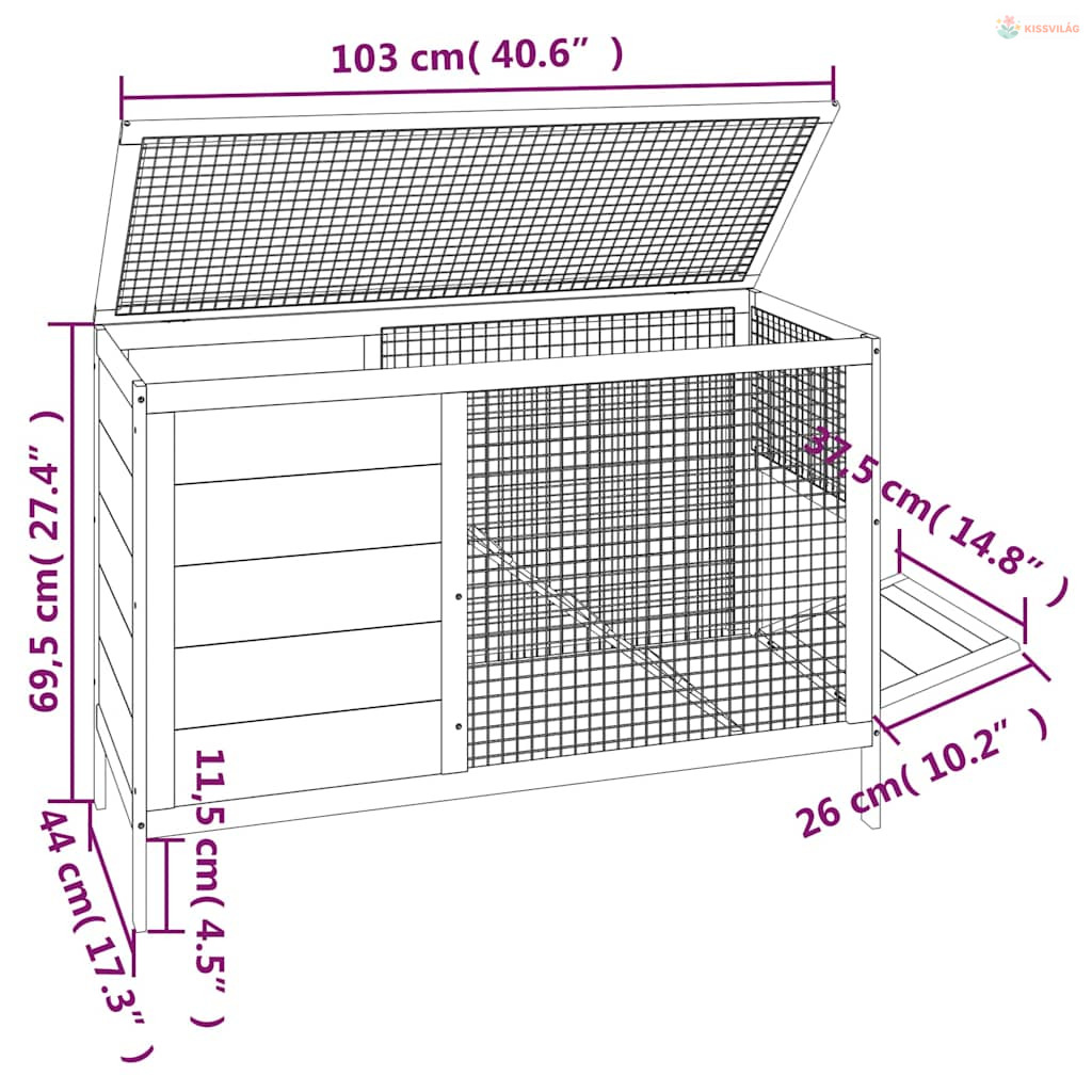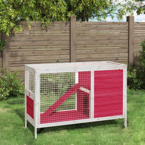 Piros tömör fenyőfa nyúlketrec 103 x 44 x 69,5 cm