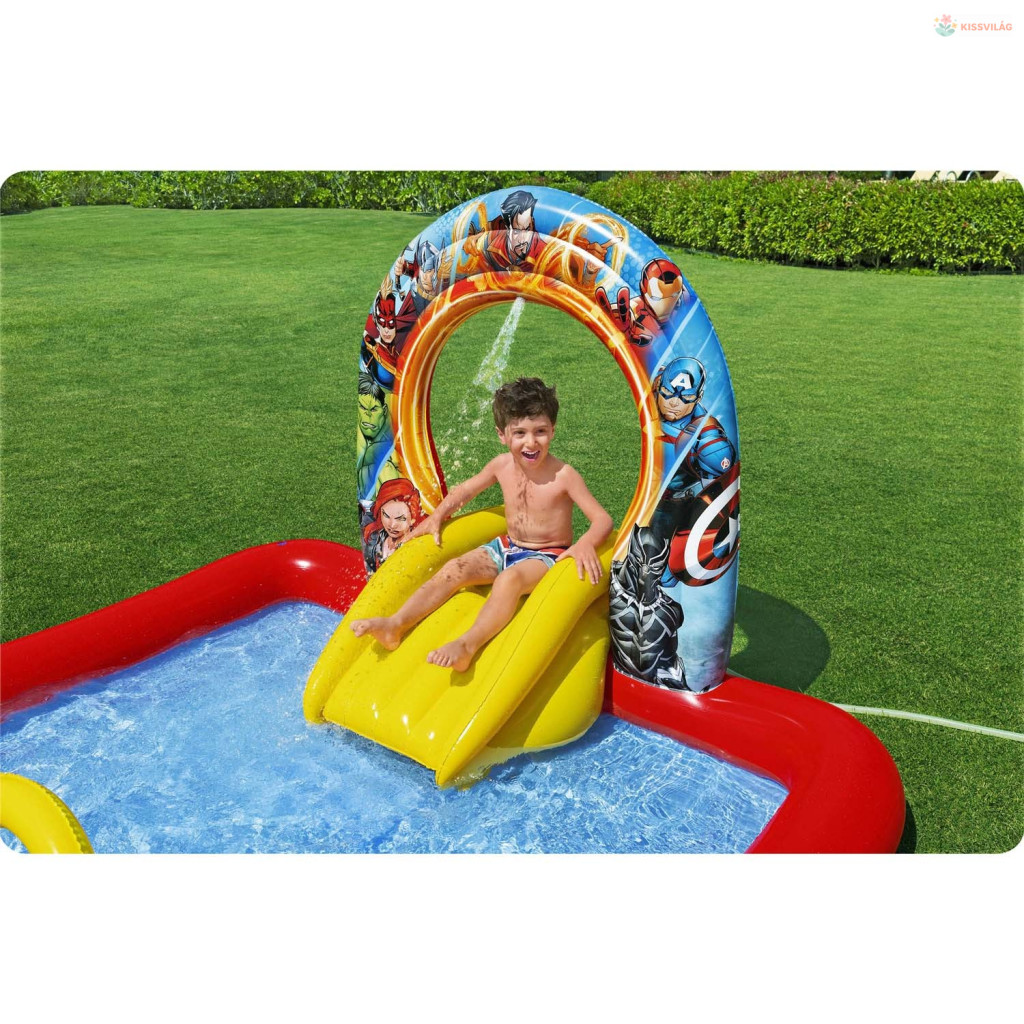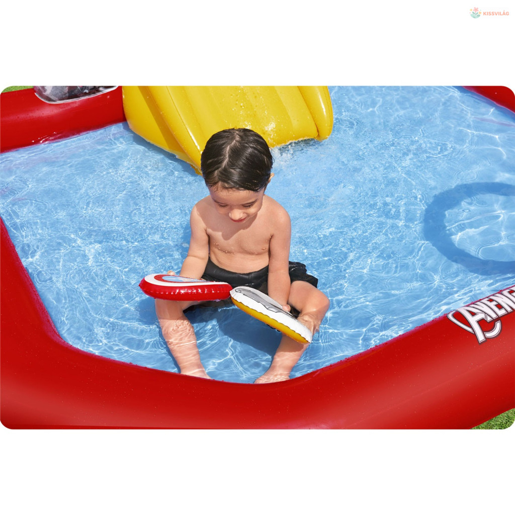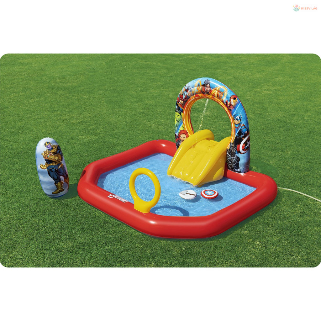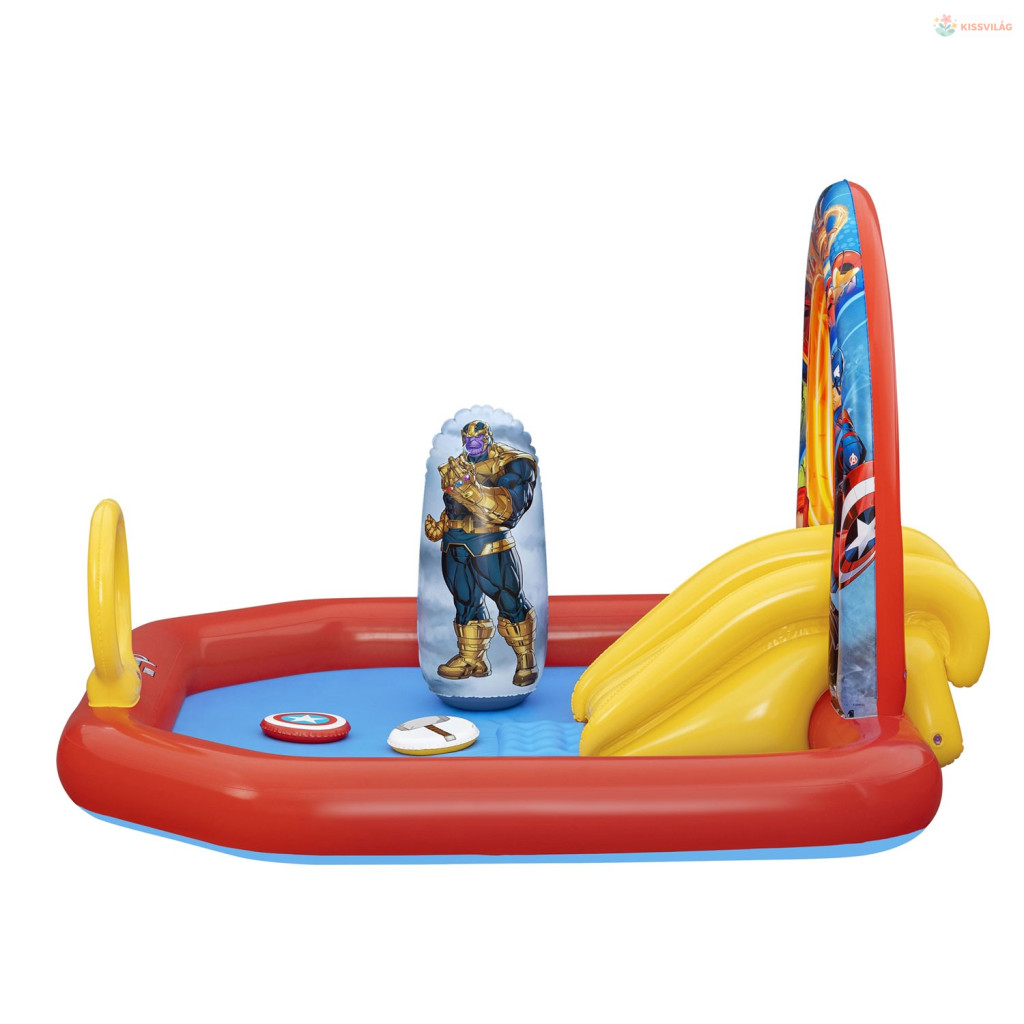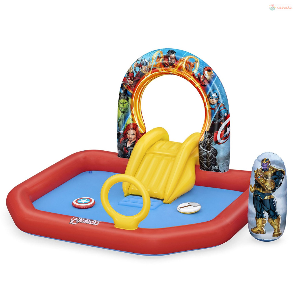 Ez a Felfújható játszóközpont Avengers 211 x 198 x 125 cm Bestway 98800 vidám választás a nyári játékhoz. Színes, szerethető megoldás, ami könnyen feldobja a gyerekek napját és sok mozgásra hív.