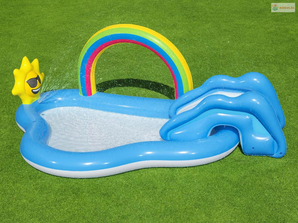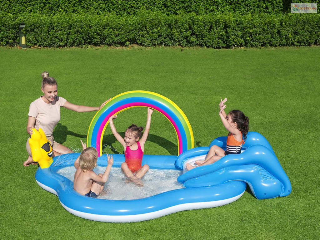 Ez a Felfújható játszóközpont szivárvány Bestway 53092 vidám választás a nyári játékhoz. Színes, szerethető megoldás, ami könnyen feldobja a gyerekek napját és sok mozgásra hív.