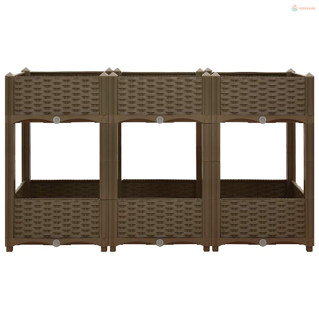 A két polccal ellátott ültető polipropilénből készült, így masszív, strapabíró és napi kültéri használatra alkalmas. A kerti edény elég mély és széles ahhoz, hogy nagy mennyiségű talaj férjen el benne, és bőséges helyet biztosít növényeinek, zöldségeinek, fűszernövényeinek és virágainak. Hozzon létre bájos környezetet növényeinek ezzel az elegáns ültetővel!