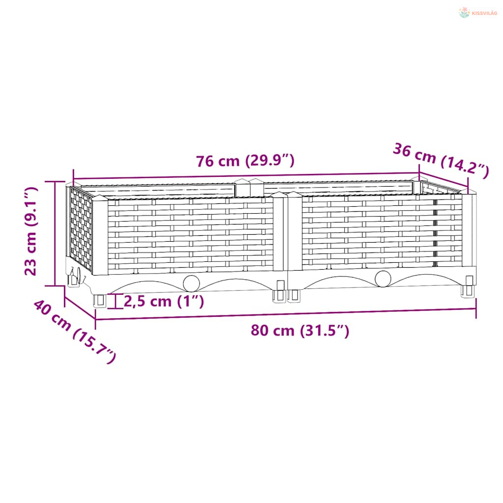 Polipropilén magaságyás 80 x 40 x 23 cm