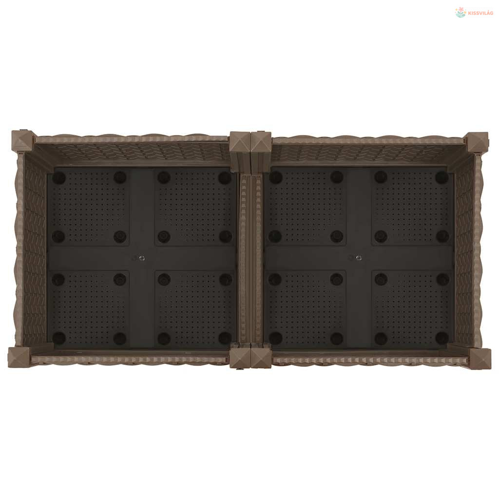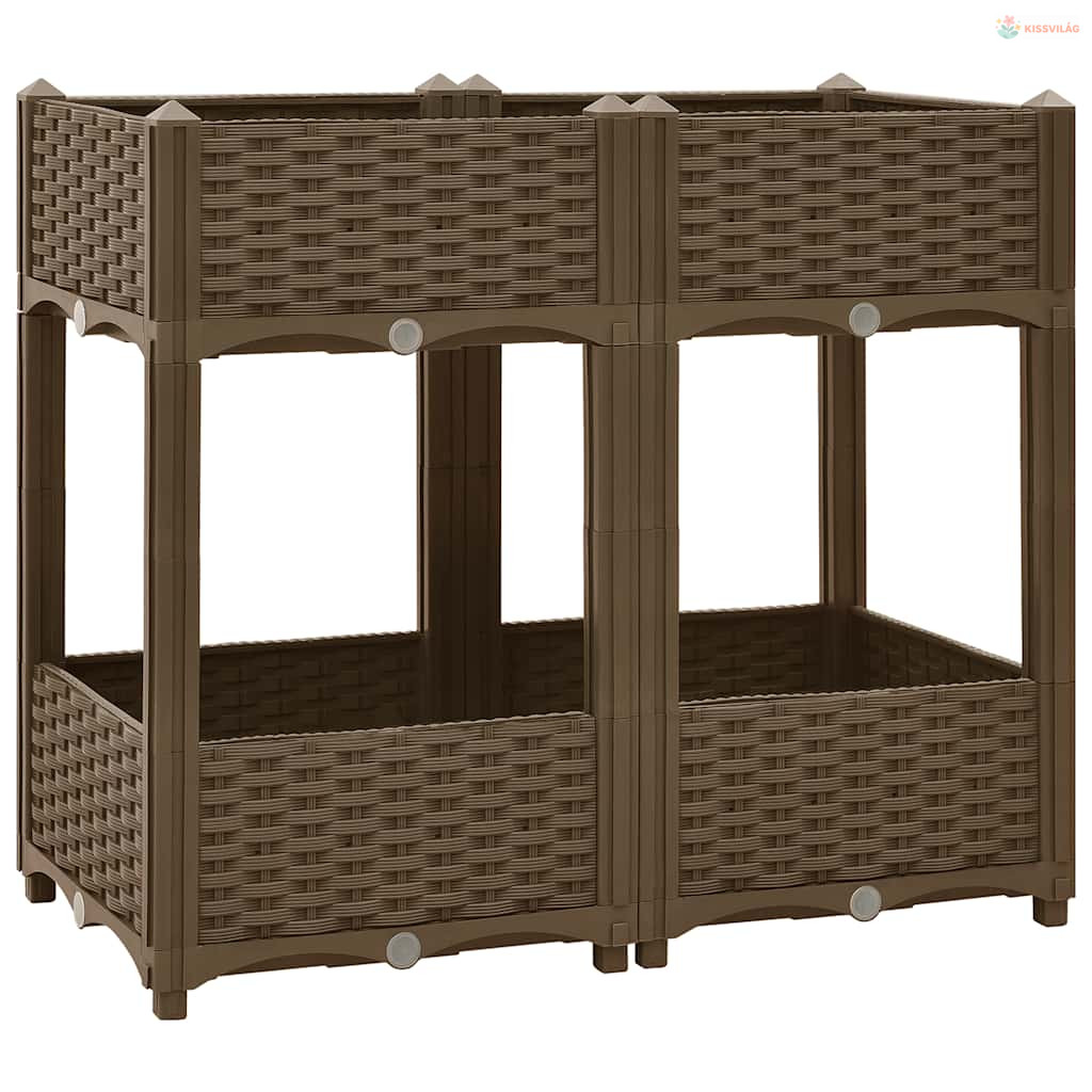 A két polccal ellátott ültető polipropilénből készült, így masszív, strapabíró és napi kültéri használatra alkalmas. A kerti edény elég mély és széles ahhoz, hogy nagy mennyiségű talaj férjen el benne, és bőséges helyet biztosít növényeinek, zöldségeinek, fűszernövényeinek és virágainak. Hozzon létre bájos környezetet növényeinek ezzel az elegáns ültetővel!