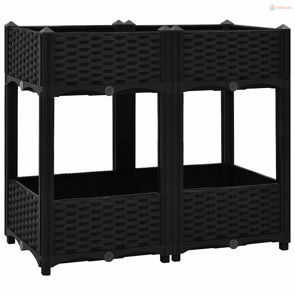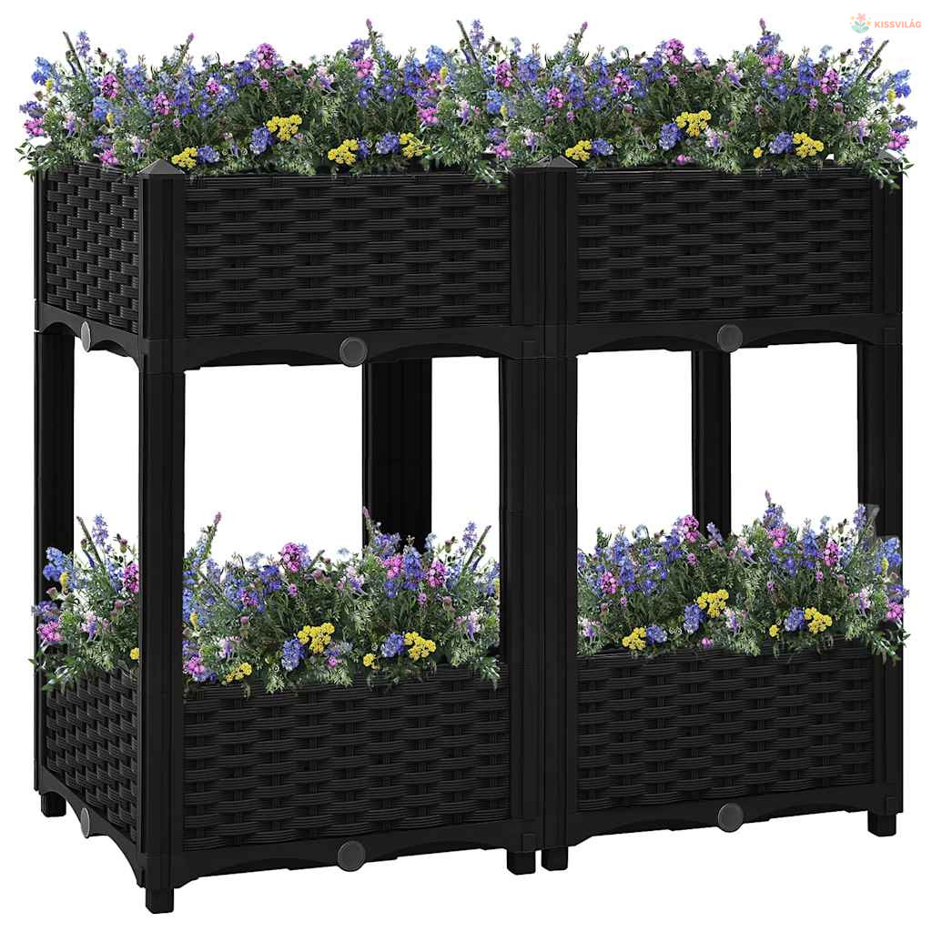 A két polccal ellátott ültető polipropilénből készült, így masszív, strapabíró és napi kültéri használatra alkalmas. A kerti edény elég mély és széles ahhoz, hogy nagy mennyiségű talaj férjen el benne, és bőséges helyet biztosít növényeinek, zöldségeinek, fűszernövényeinek és virágainak. Hozzon létre bájos környezetet növényeinek ezzel az elegáns ültetővel!