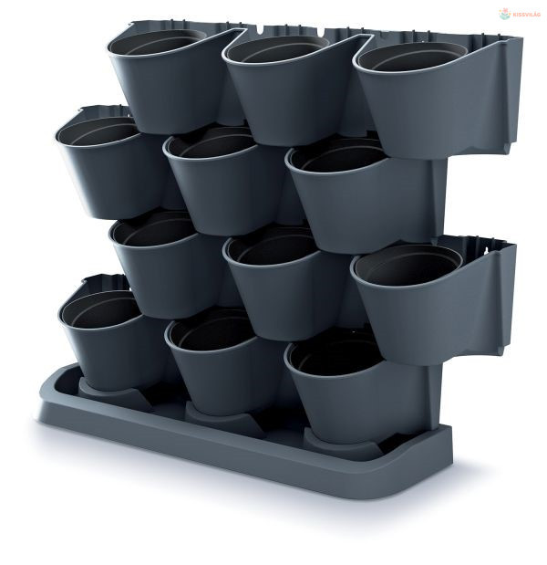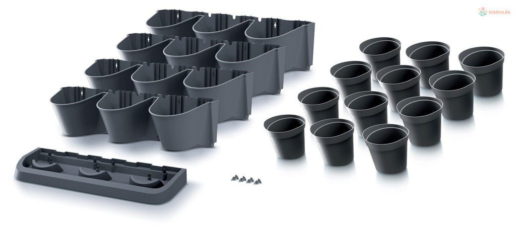 Vízszintes kaspó készlet, alkalmas kültéri és beltéri használatra, összesen 12 kaspó, használható öntöző rendszerrel (nem része a csomagnak), műanyag, 3,632 kg, méretek (h x sze x ma): 68,5 x 19 x 54,6 cm, antracit szín.