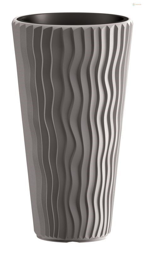 Tedd beltéri vagy kültéri növényeidet a Prosperplast SANDY SLIM magas virágtartóba. Vagy ültess bele fiatal palántákat. A cserép minőséges műanyagból készült. A homokdűnékre emlékeztető hullámos textúrájú kialakításának köszönhetően tökéletesen díszít minden szobát, verandát, erkélyt és télikertet.