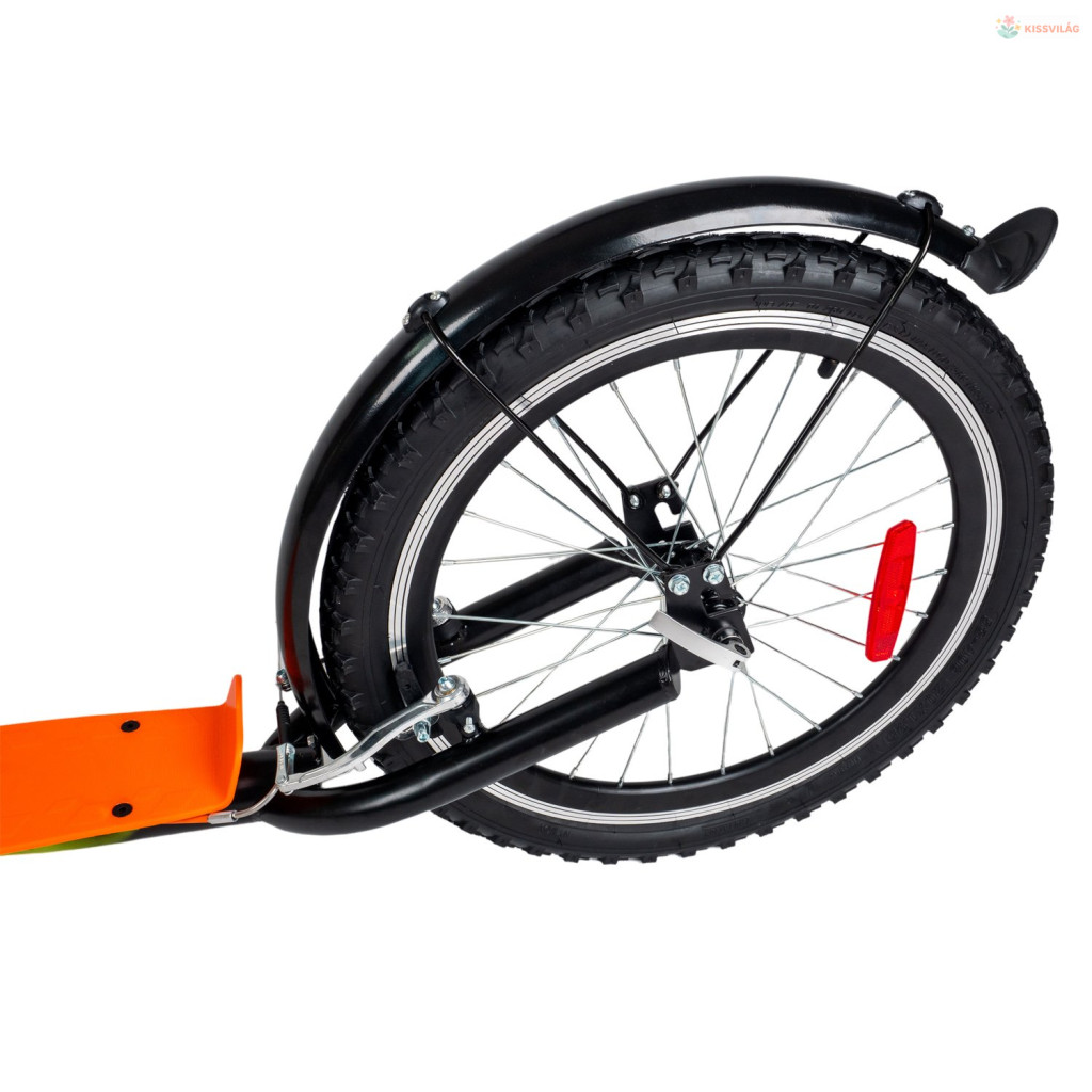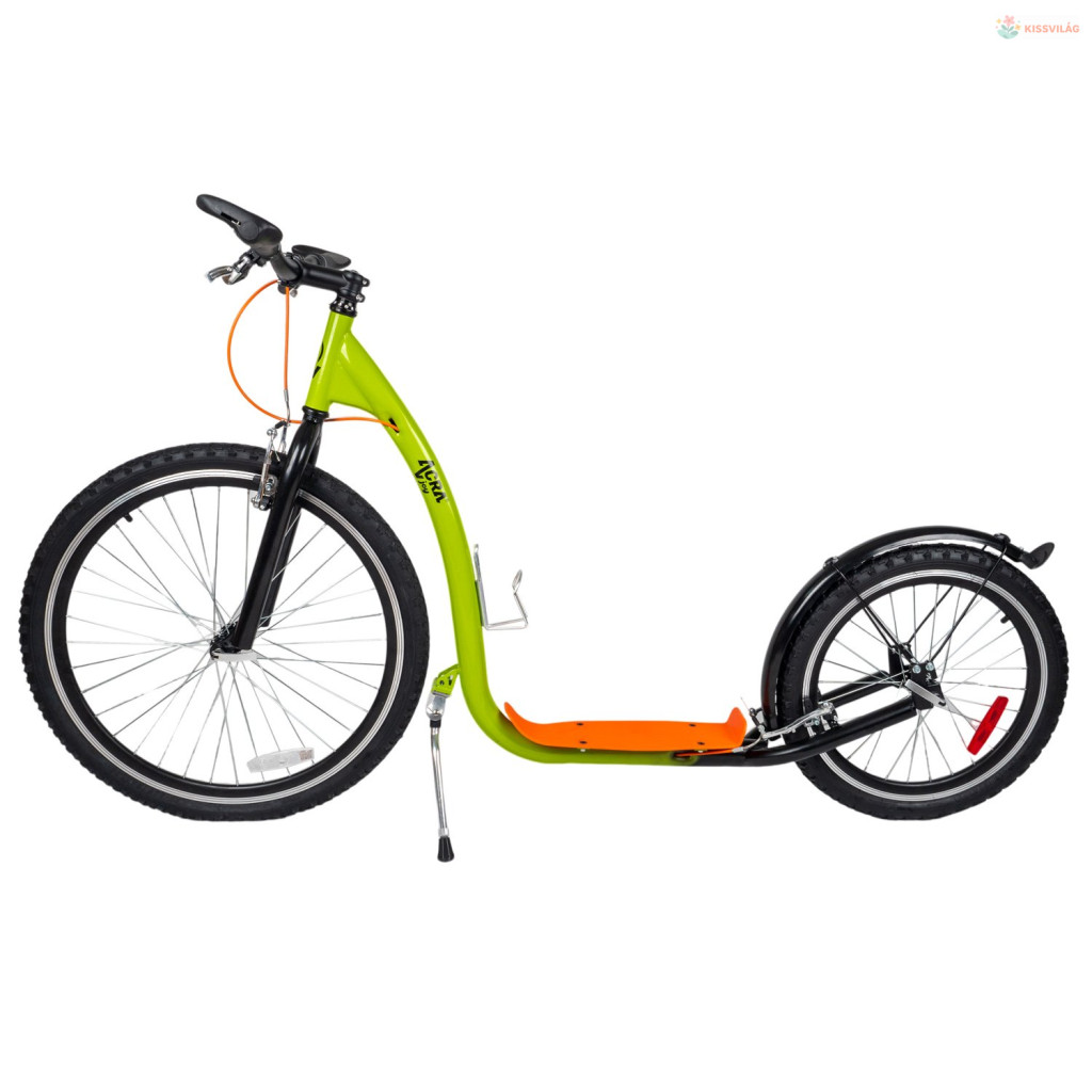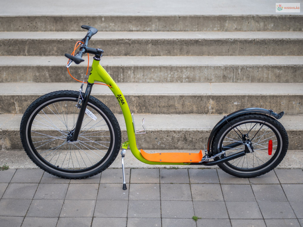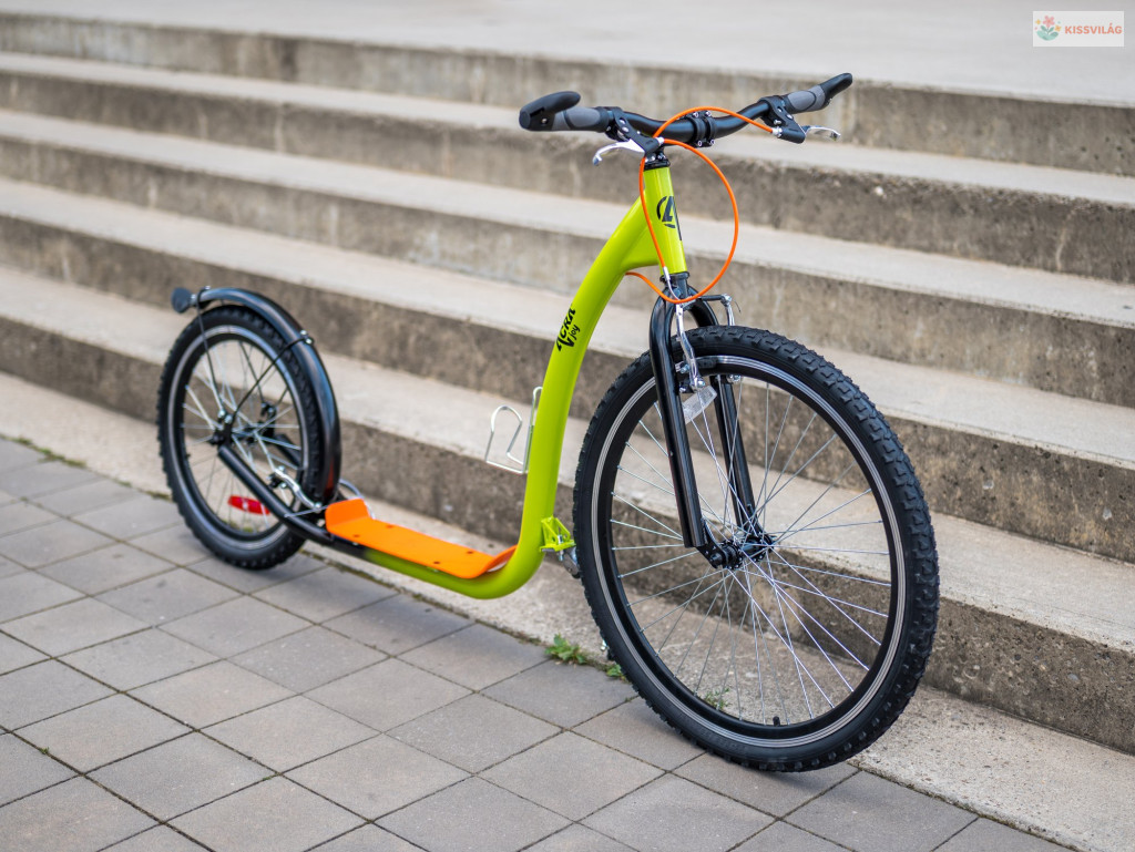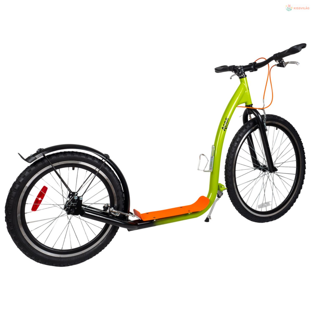Robogó 120 kg terhelhetőséggel, ajánlott testmagasság 190 cm-ig, 14 éves kortól, első kerék 26„, hátsó kerék 20”, minőségi könnyű acél, első és hátsó V-fék, gumi fogantyúk. Palacktartó.