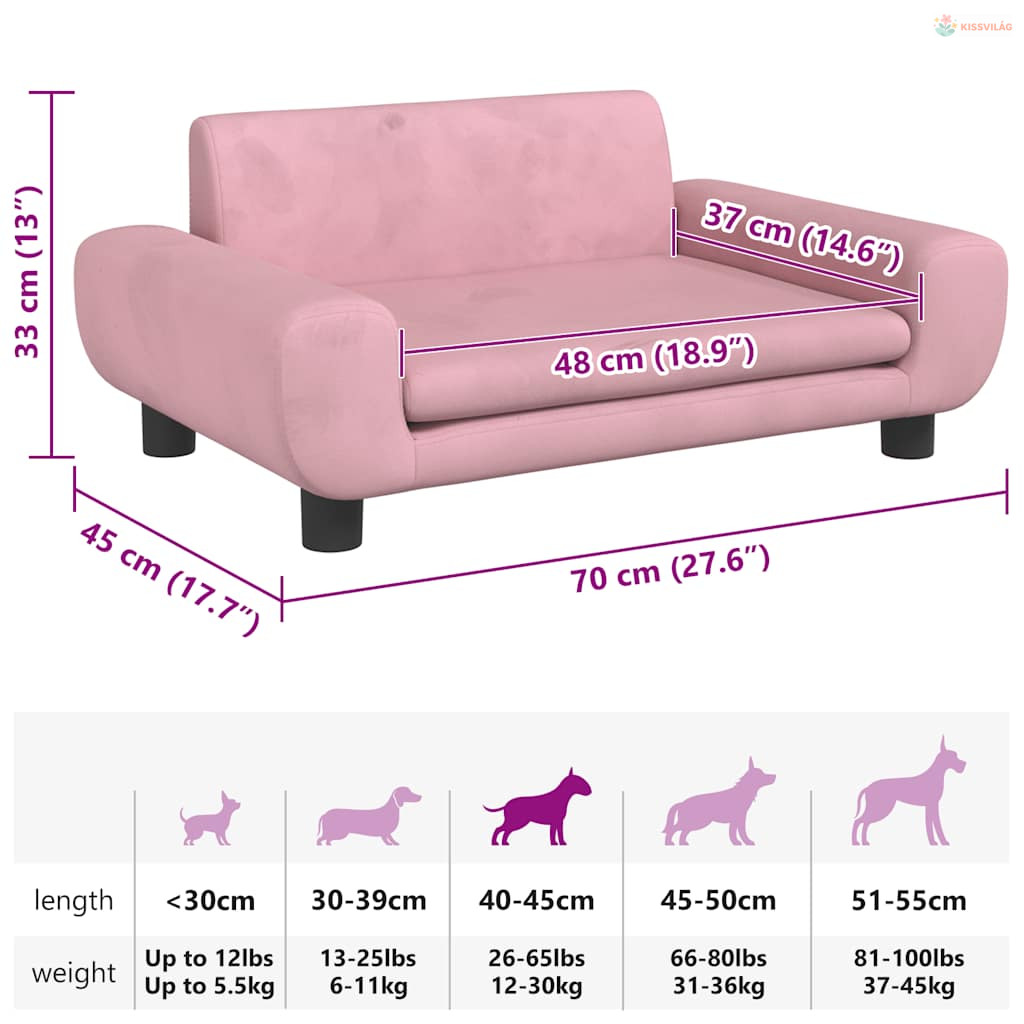 Rózsaszín bársony kutyaágy 70 x 45 x 33 cm