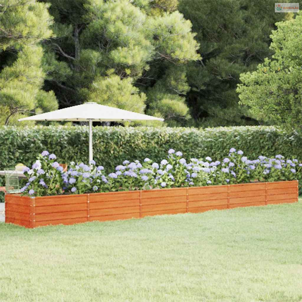 Rozsda színű corten acél kerti magaságyás 600 x 80 x 45 cm