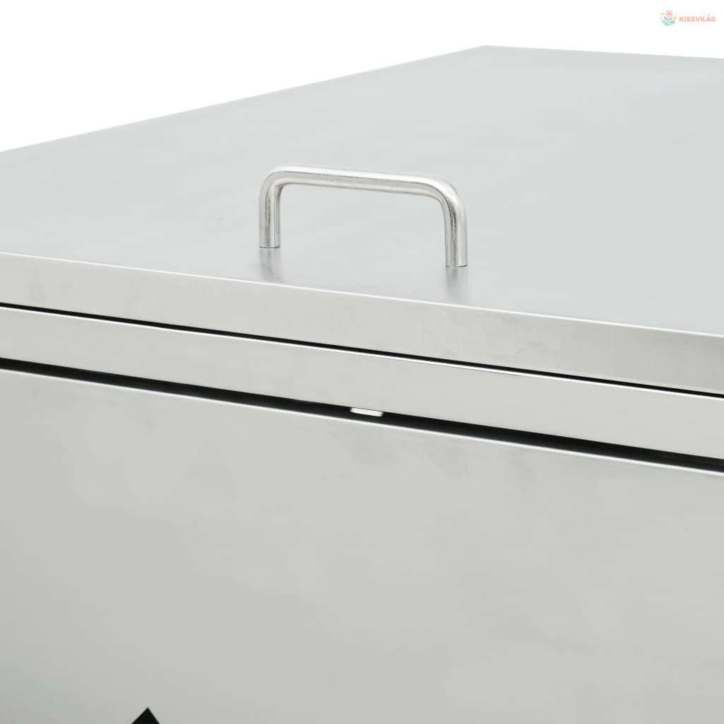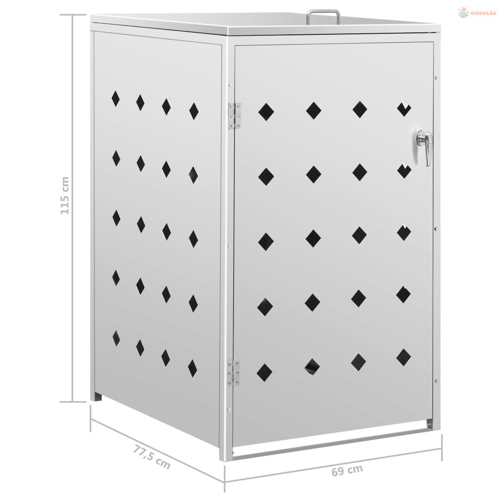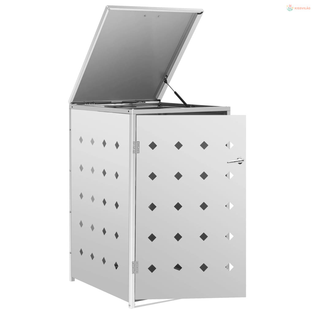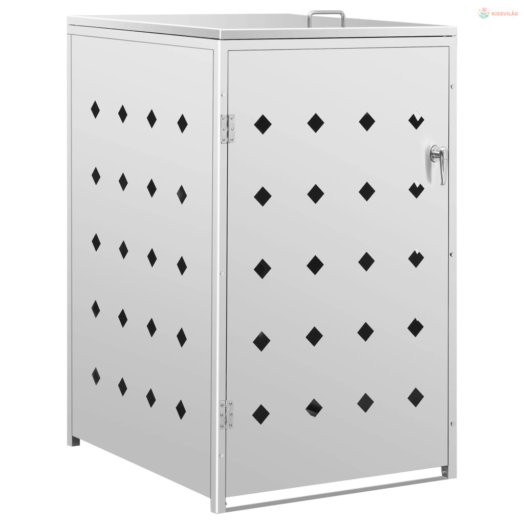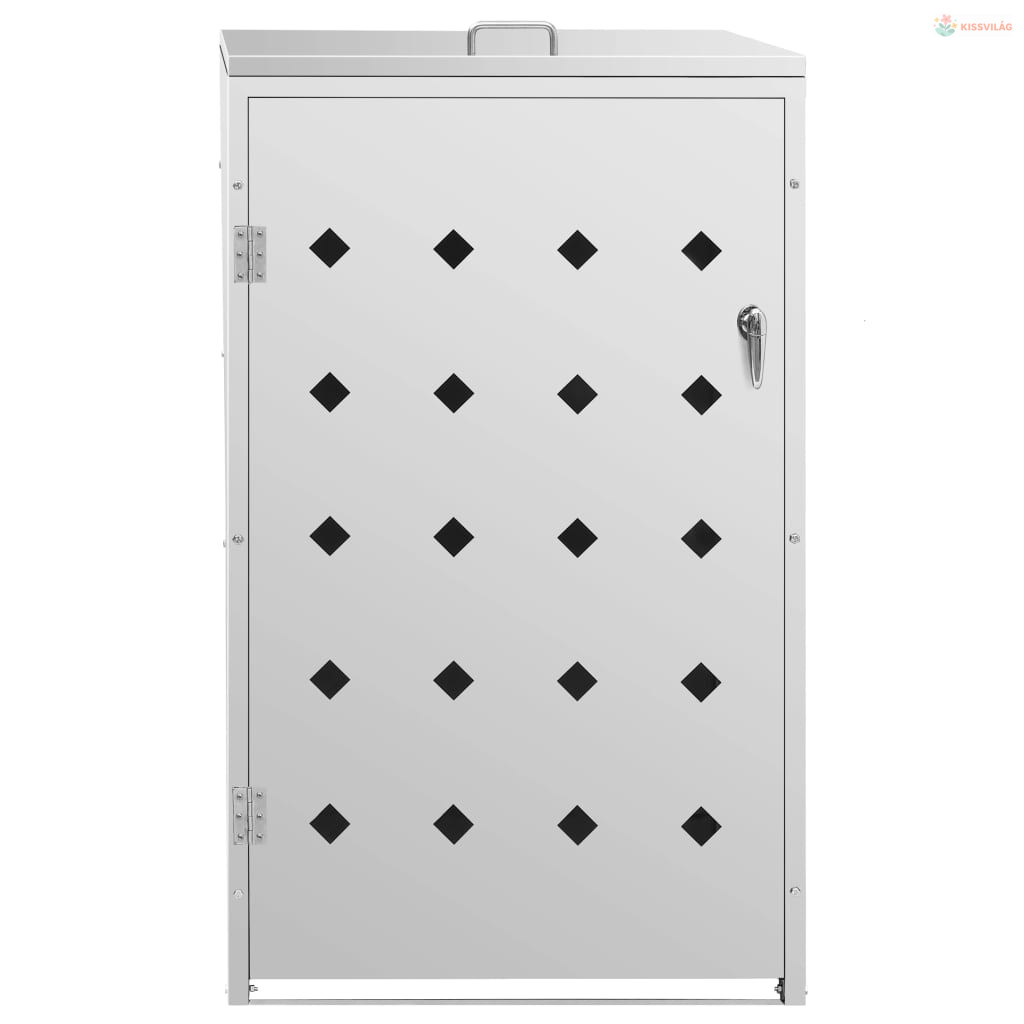 A rozsdamentes acélból készült kukatároló rendkívül időjárásálló és tartós. A hasznos szellőzőnyílások lehetővé teszik a szellőzést, és megakadályozzák a kellemetlen szagok elterjedését a tárolóban, a zár pedig biztosítja a szemetes biztonságos tárolását. Emellett a praktikus ajtó lehetővé teszi, hogy a szemeteskukát könnyen betegye és kivegye.