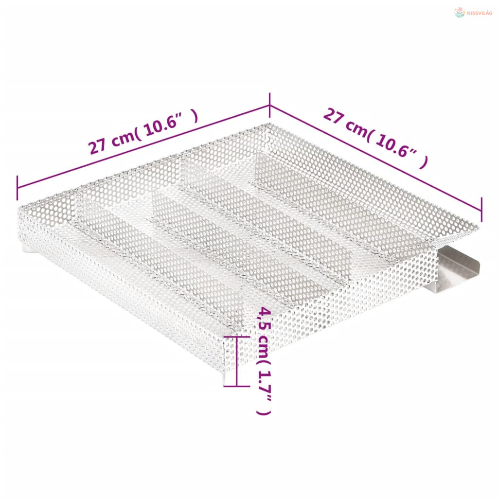• Masszív rácsszerkezet: A négyzet alakú kompakt háló lehetővé teszi a füstölőforgácsok egyenletes és lassú égését akár 16 órán keresztül. Az időtartam nagymértékben függ a füstölőfa természetétől. A legjobb eredmény elérésének érdekében 0,5-2,0 mm szemcseméretű forgács használata javasolt.