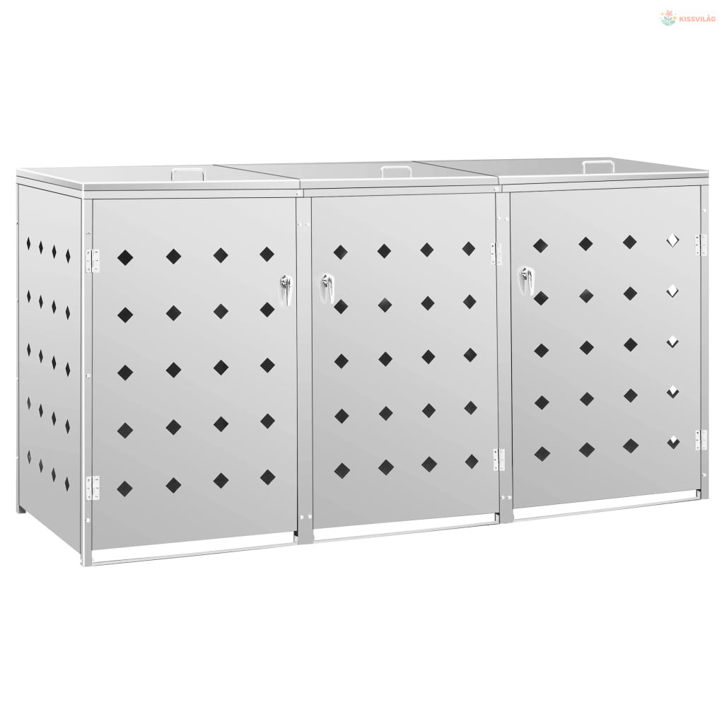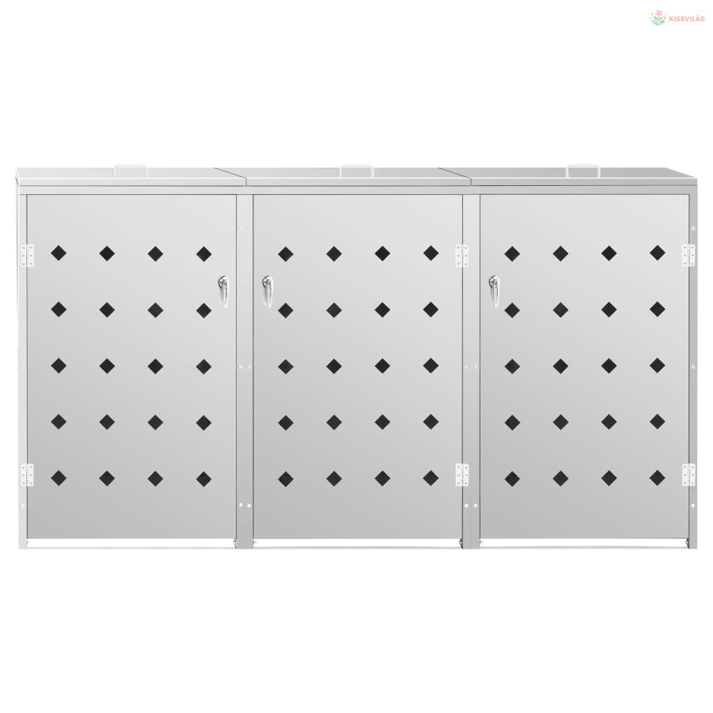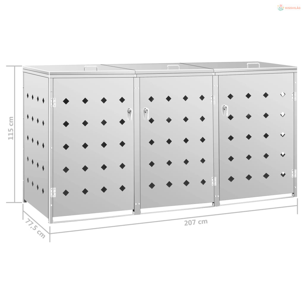 Rozsdamentes acél tároló három gurulós szemeteskukához 240 L