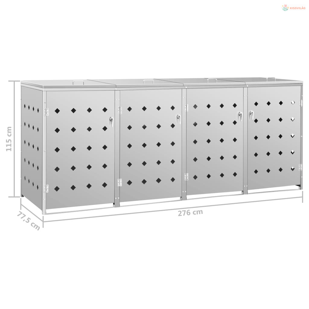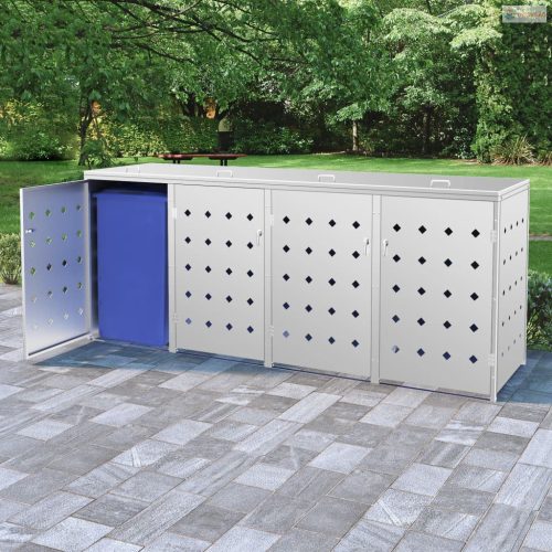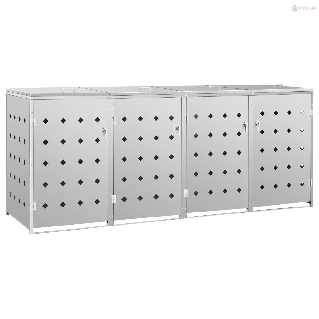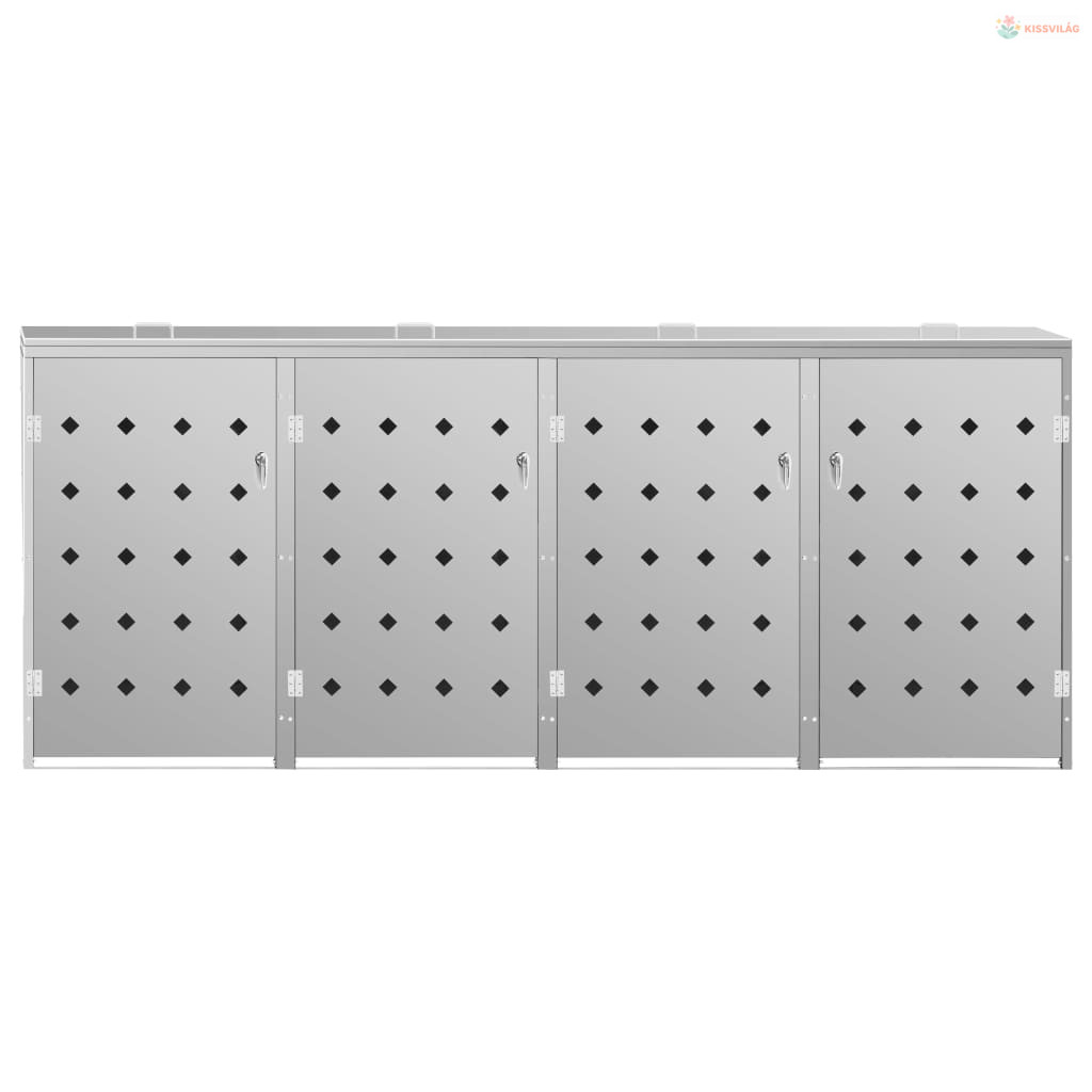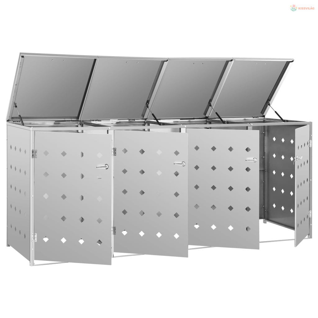 Rozsdamentes acéltároló négy gurítható szemeteskukához 240 L