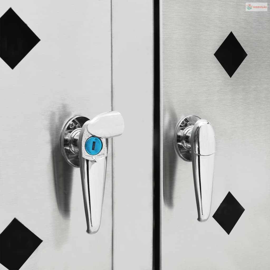 A rozsdamentes acélból készült kukatároló rendkívül időjárásálló és tartós. A hasznos szellőzőnyílások lehetővé teszik a szellőzést, és megakadályozzák a kellemetlen szagok elterjedését a tárolóban, a zár pedig biztosítja a szemetes biztonságos tárolását. Emellett a praktikus ajtó lehetővé teszi, hogy a szemeteskukát könnyen betegye és kivegye.