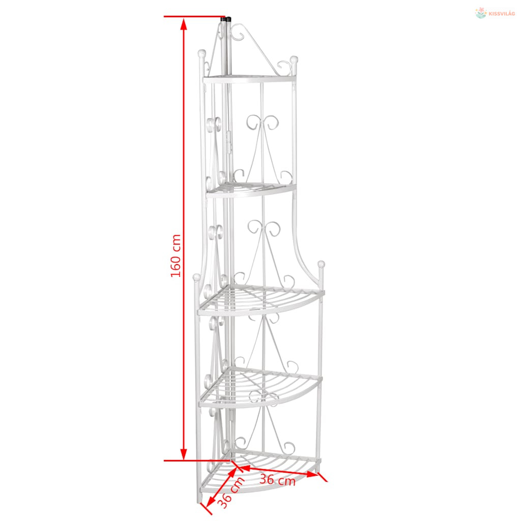 Ez a sarok növény állvány, rozsamintázattal, tökéletes választás, hogy tegye a növényeket látható helyre, egy igazi látványosság bármilyen kertben, udvaron vagy teraszon. Az 5 rétegű növény állvány magassága 160 cm, és lehet tökéletesen helyezni bármilyen fali sarokba. Kiváló minőségű acélból, a növény állvány nagyon tartós, míg a bevonat teszi rozsdamentessé és időtartóssabbá.