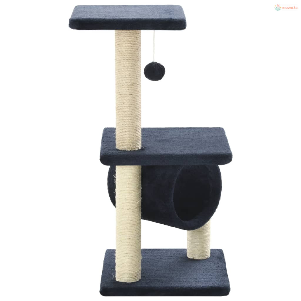 Sötétkék macskabútor szizál kaparófákkal 65 cm