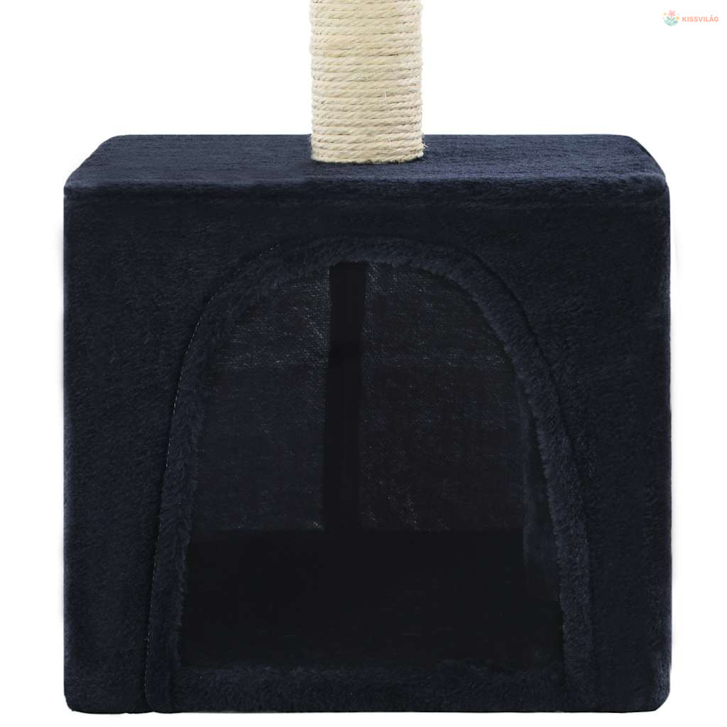 Sötétkék macskabútor szizál kaparófával 55 cm