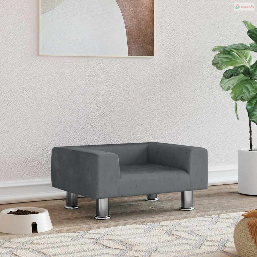 Sötétszürke bársony kutyaágy 50 x 40 x 26,5 cm