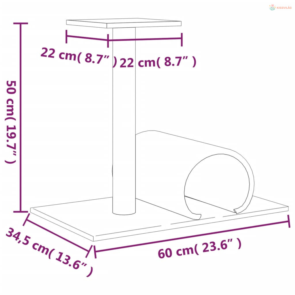 Sötétszürke kaparófa alagúttal 60 x 34,5 x 50 cm
